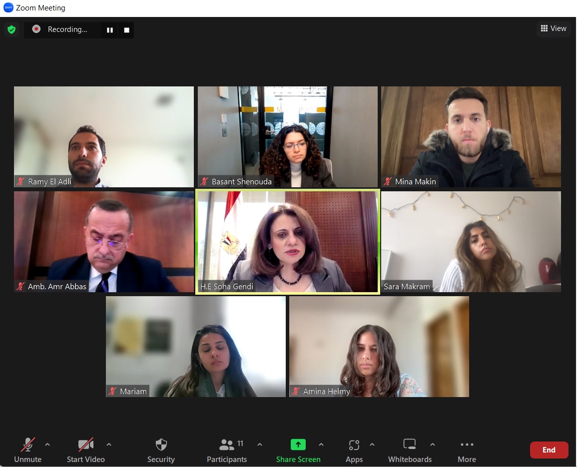 وتابعت السفيرة سها جندي أنها حرصت على مشاركة مجموعة مختارة من أعضاء وممثلي مركز الحوار ميدسي، في إدارة مختلف الملفات الخاصة بالمركز، نظرا لحرصهم وشغفهم على تعظيم دور المركز ورغبتهم الملحة في تقديم أوجه المساعدة والدعم لبلدهم مصر خلال المرحلة الراهنة، وهو ما دفعنا لاتخاذ خطوات جادة في هذا المسار، مشيرة إلى أن الباب مفتوح أمام باقي الشباب للمشاركة بأفكارهم وجهدهم لإدارة المركز ليكون من الشباب وإلى الشباب.
