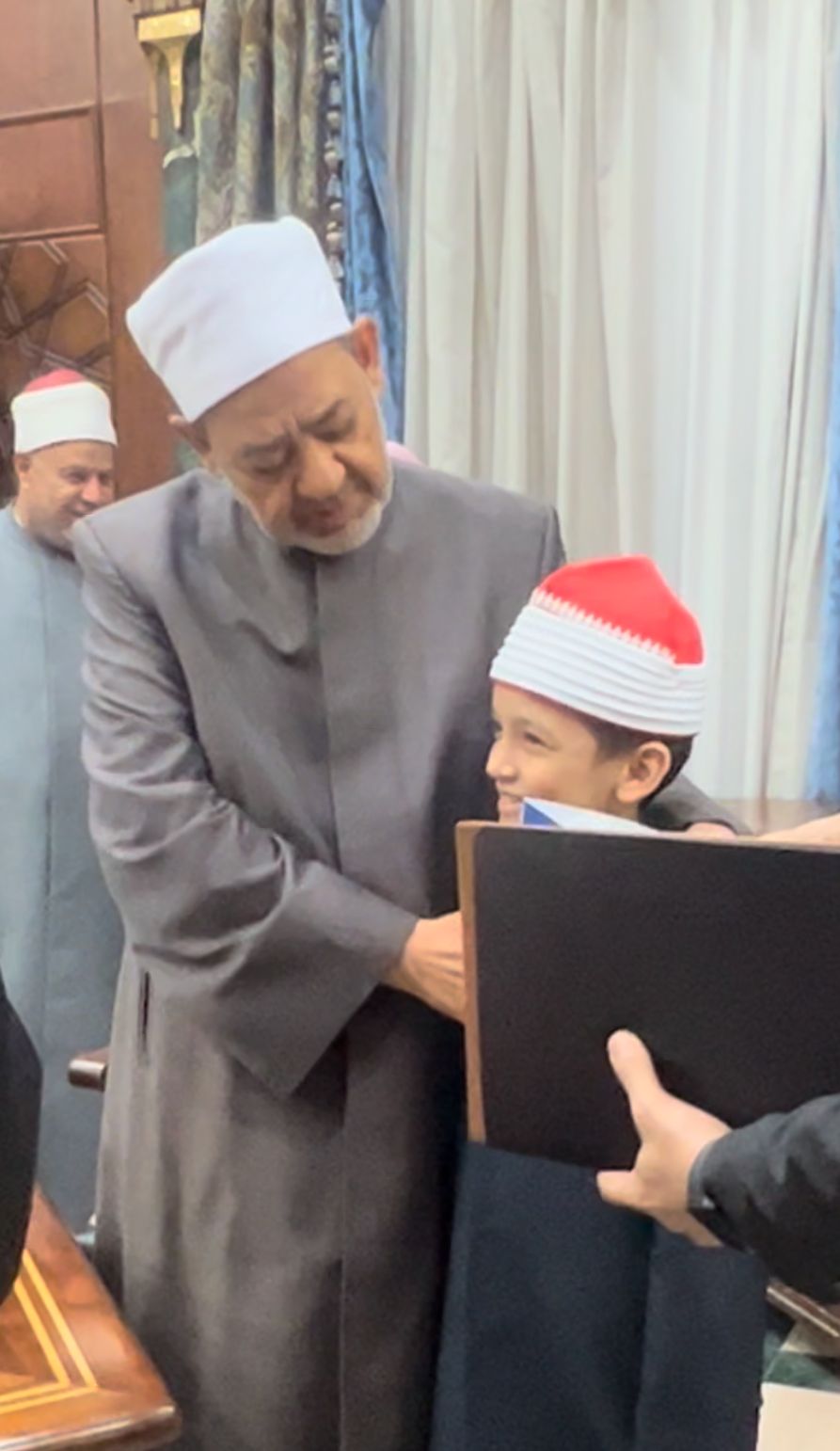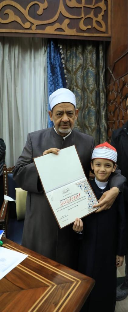 وكان الإمام الأكبر الدكتور أحمد الطيب، شيخ الأزهر الشريف، كرّم الطفل عمر علي، الملقب بالقارئ الصغير، في مكتبه ومنحه شهادة تقدير.