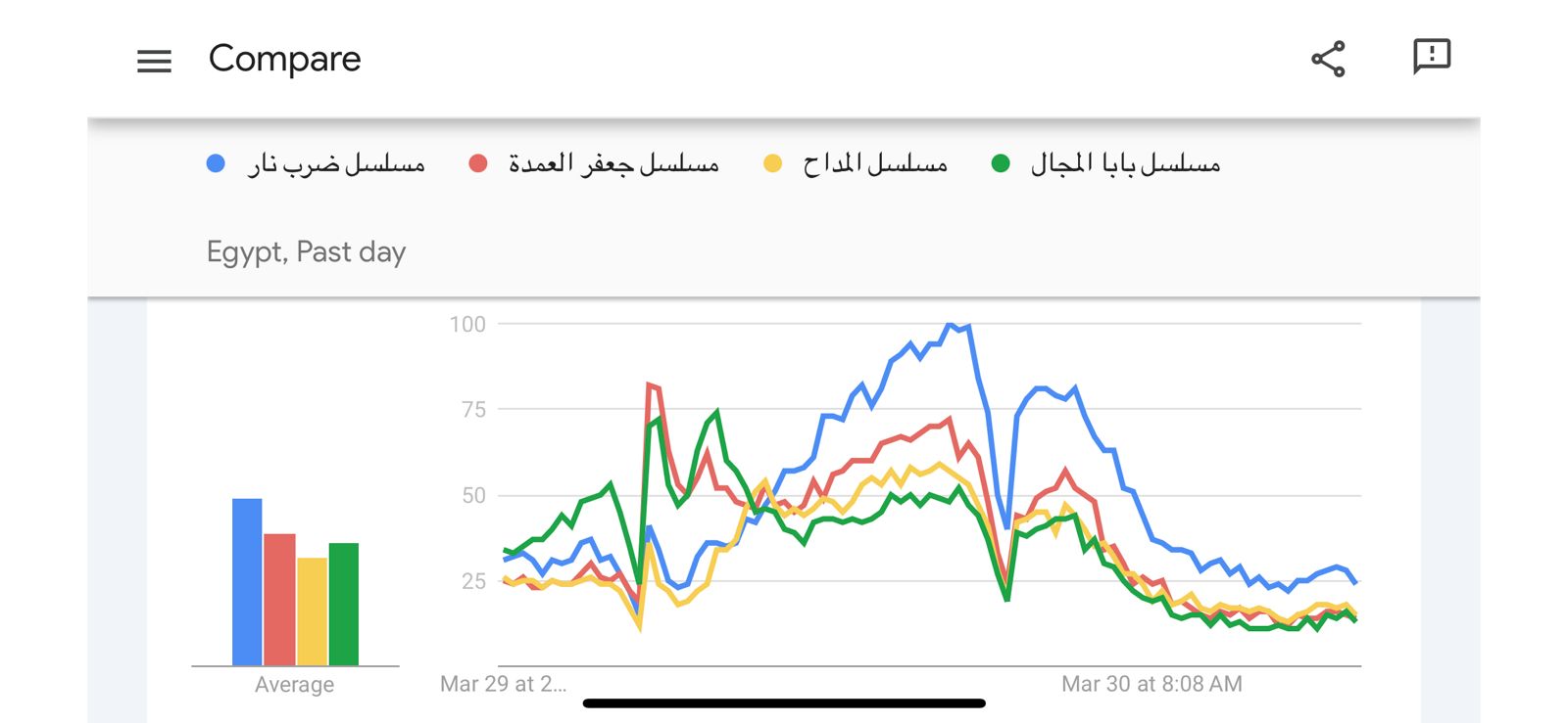 وكشفت أدوات محرك البحث جوجل تصدر مسلسل ضرب نار الأكثر بحثًا متفوقًا على مسلسل المداح لـ حمادة هلال ومسلسل بابا المجال لـ مصطفى شعبان ومسلسل جعفر العمدة لـ محمد رمضان.