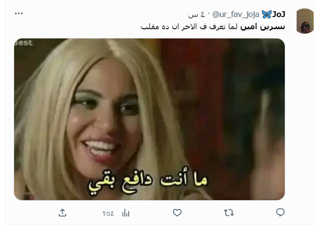 وتداول مستخدمو تويتر صورًا لـ نسرين أمين من فيلم حملة فريزر، وأخذوا يسخرون من جملتها الشهيرة ما أنت دافع بقى.