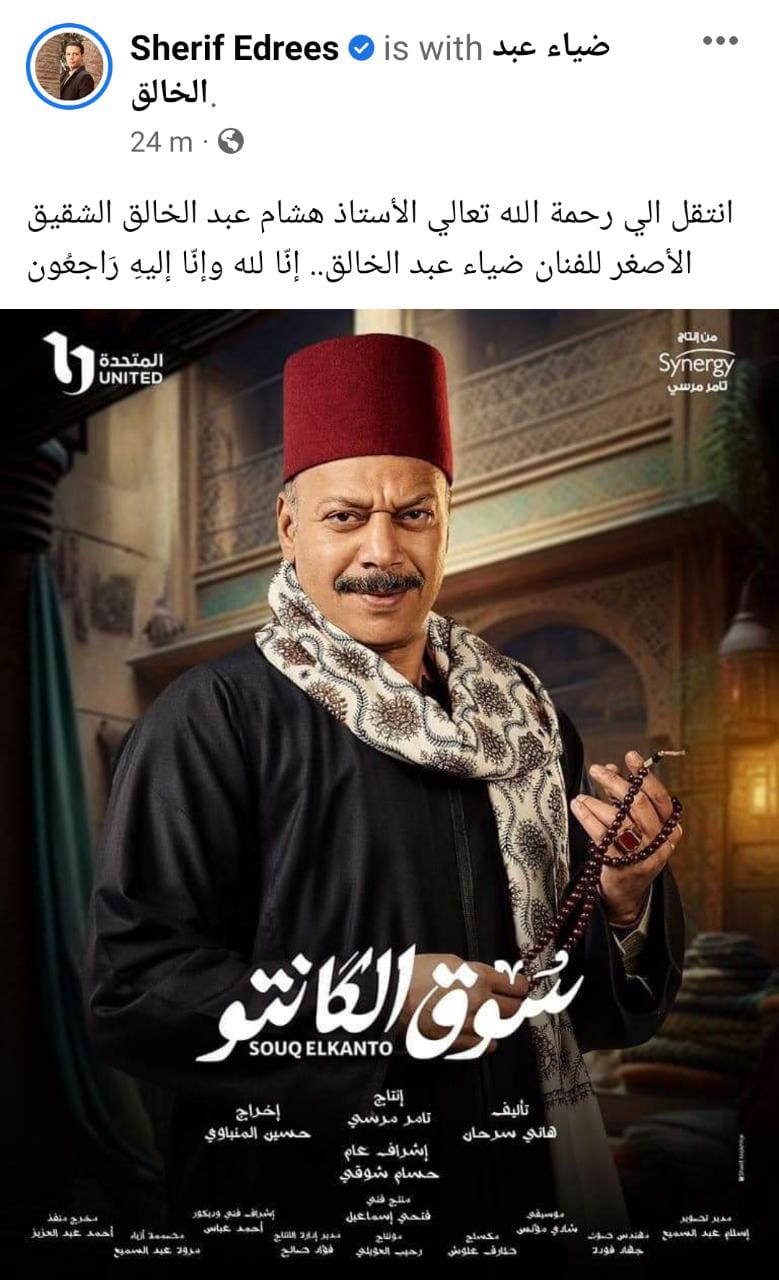 وأعلن الفنان شريف إدريس، وفاة الشقيق الأصغر للفنان ضياء عبد الخالق، حيث كتب عبر حسابه الشخصي بموقع التواصل الاجتماعي فيس بوك: انتقل إلى رحمة الله تعالى الأستاذ هشام عبد الخالق الشقيق الأصغر للفنان ضياء عبد الخالق.. إنا لله وإنا إليه راجعون.