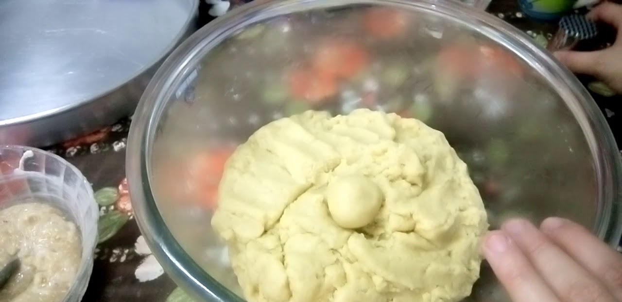 الخطوة السادسة: ضعي خليط الخميرة بعد التأكد من صلاحيته بملاحظة وجود رغاوي على سطح الخليط، ثم أضيفيه على الدقيق والسمنة في العجان واستمري في الخفق على السرعة المتوسطة حتى تتماسك العجينة وتنفصل عن سكين العجان، ويمكنك اختبارها بتكوير قطعة من العجينة فإذا كانت غير متشققة ستكون علامة على نجاح عجينة الكعك.