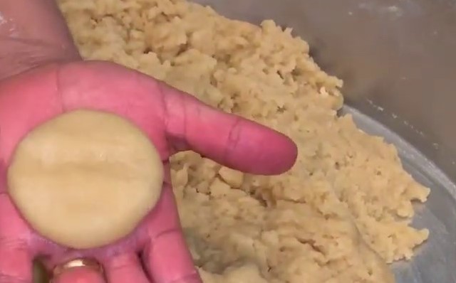 الخطوة السابعة: ضعي عجينة الكعك في بولة بلاستيكية وغلفيها بكيس نايلون واتركيها مدة ساعة تقريبا حتى تبرد تماما من الحرارة الموجودة فيها ليسهل تشكيلها ثم شكليها إلى كرات متساوية الحجم وانقشيها بالمنقاش أو باستخدام طباعة متواجدة في محلات مستلزمات الحلويات.