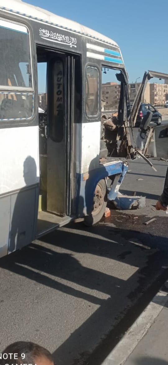 إصابة 11 شخصا في حادث تصادم أتوبيس بسيارة نقل على طريق اسبيكو بالسلام| صور