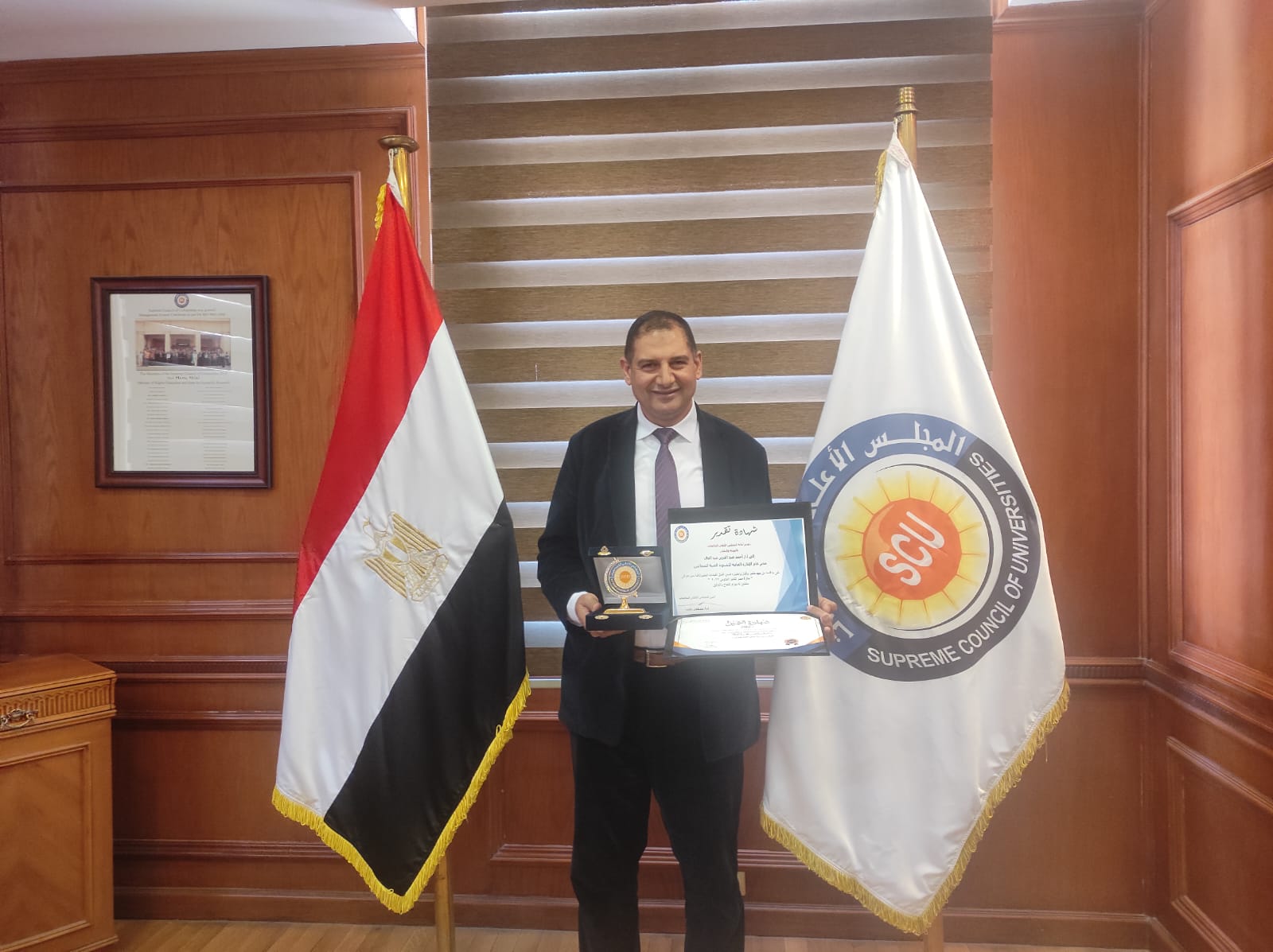 وأعرب أمين المجلس الأعلى للجامعات، عن تقديره الشديد لتمثيل المجلس في تلك الجائزة وتكريم أحمد عبد العزيز، وسلم رفعت أحمد عبد العزيز شهادة تقدير، ودرع المجلس الأعلى للجامعات.
