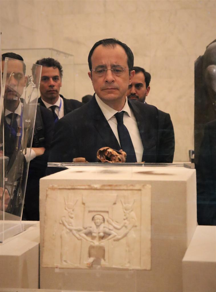 استقبل المتحف القومي للحضارة اليوم نيكوس كريستودوليدس رئيس جمهورية قبرص والوفد المرافق له، وكان في استقبالهم فيروز فكرى نائب رئيس هيئة المتحف للإدارة والتشغيل، التي رحبت بهم واصطحبتهم في جولة تعريفية داخل المتحف وما يحويه من مقتنيات أثرية فريدة.