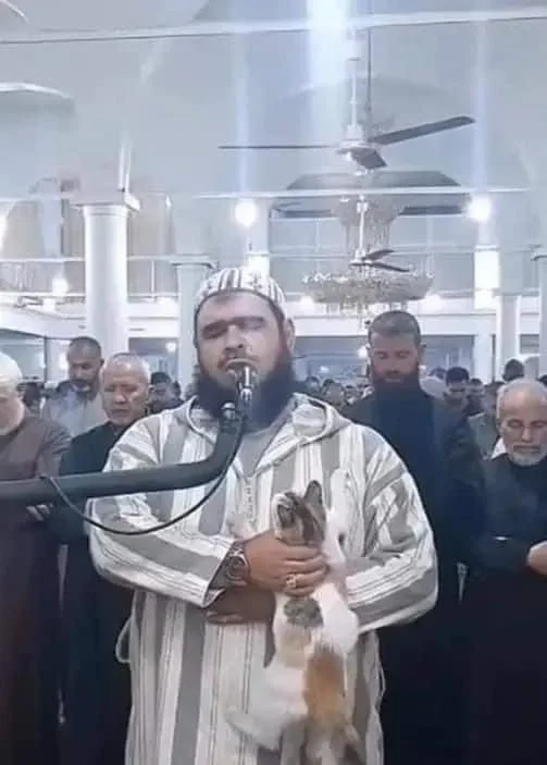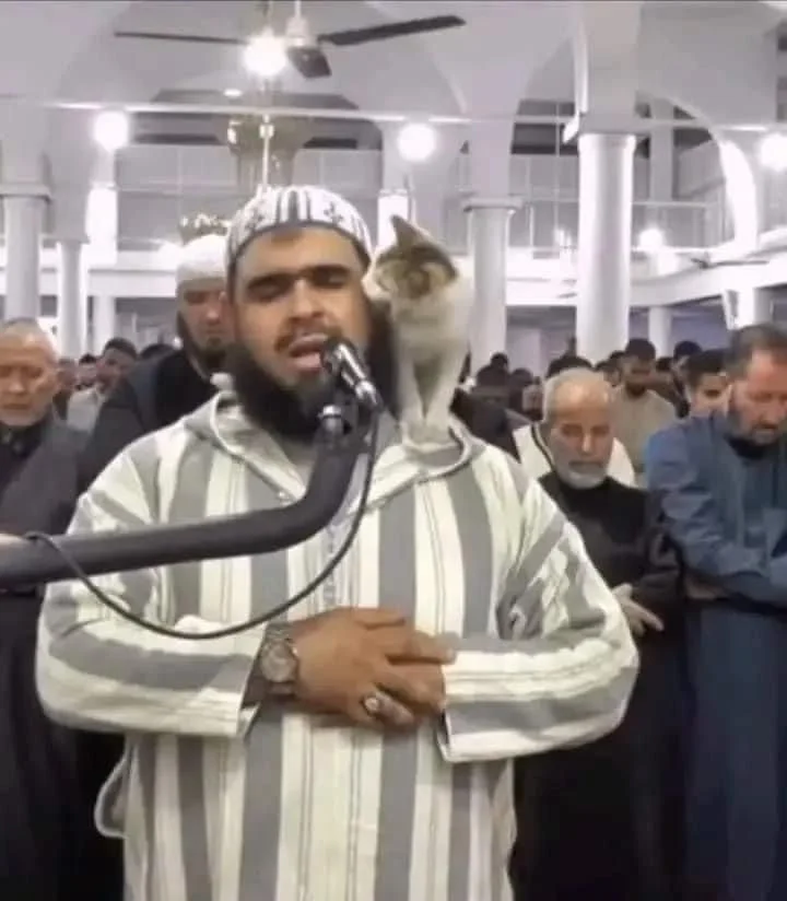ونال مشهد قطة تصعد إلى كتف إمام مسجد في الجزائر في أثناء أدائه صلاة التراويح إعجاب الملايين حول العالم.