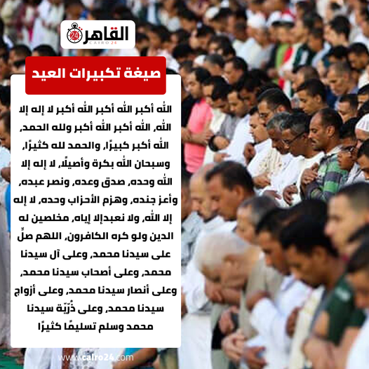وحرصًا من القاهرة 24 على تقديم الخدمات وآخر الأخبار للمتابعين، سنقدم لكم عبر السطور التالية كلمات تكبيرات العيد كاملة، بالإضافة إلى حكم التكبير في العيد.