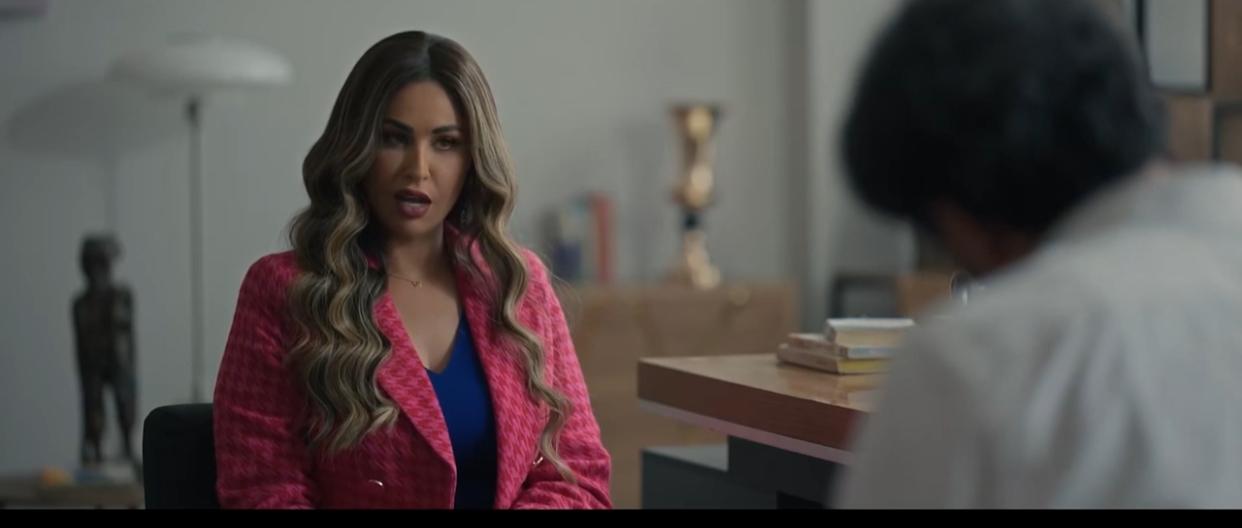 ترى غادة زميلة زوجها (مي سليم) جالسه بشكل غير لائق معه ورغم أنها رأتها إلا أنها تحرص على النظر في عينيها؛ لتؤكد لها أن زوجها يخونها معها، وذلك مثلما حدث في الفيلم الثاني تمامًا.