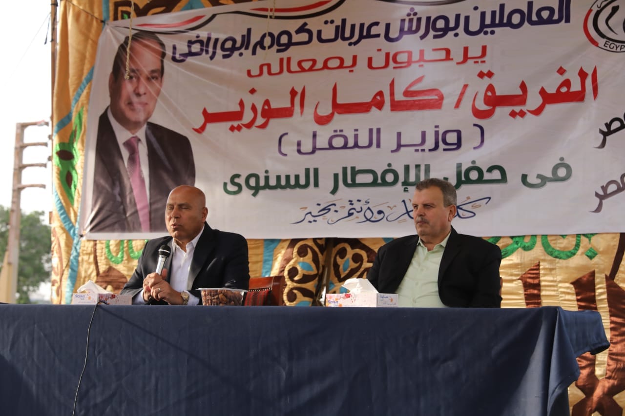 وزير النقل يتناول وجبة الإفطار مع عمال ومهندسي ورش كوم أبو راضي