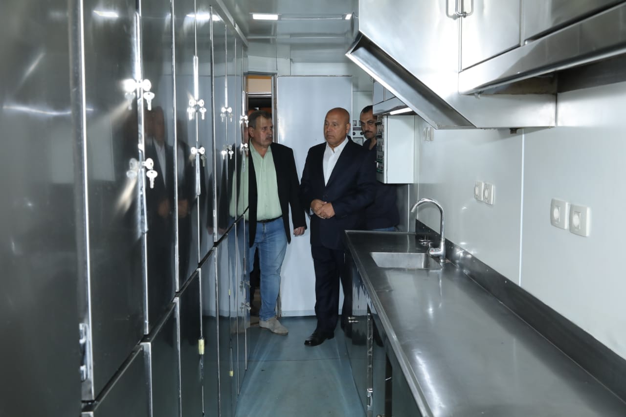 بدأت الجولة بتفقد الوزير لأحد القطارات الإسباني الجاري إعادة تأهيلها وتطويرها وتحديثها بالكامل، حيث يتم تغيير وتجديد كل دواخل العربة من مقاعد وأرضيات وشبابيك وستائر وتكييف، بالإضافة إلى دهان العربة من الخارج بشكل مميز.