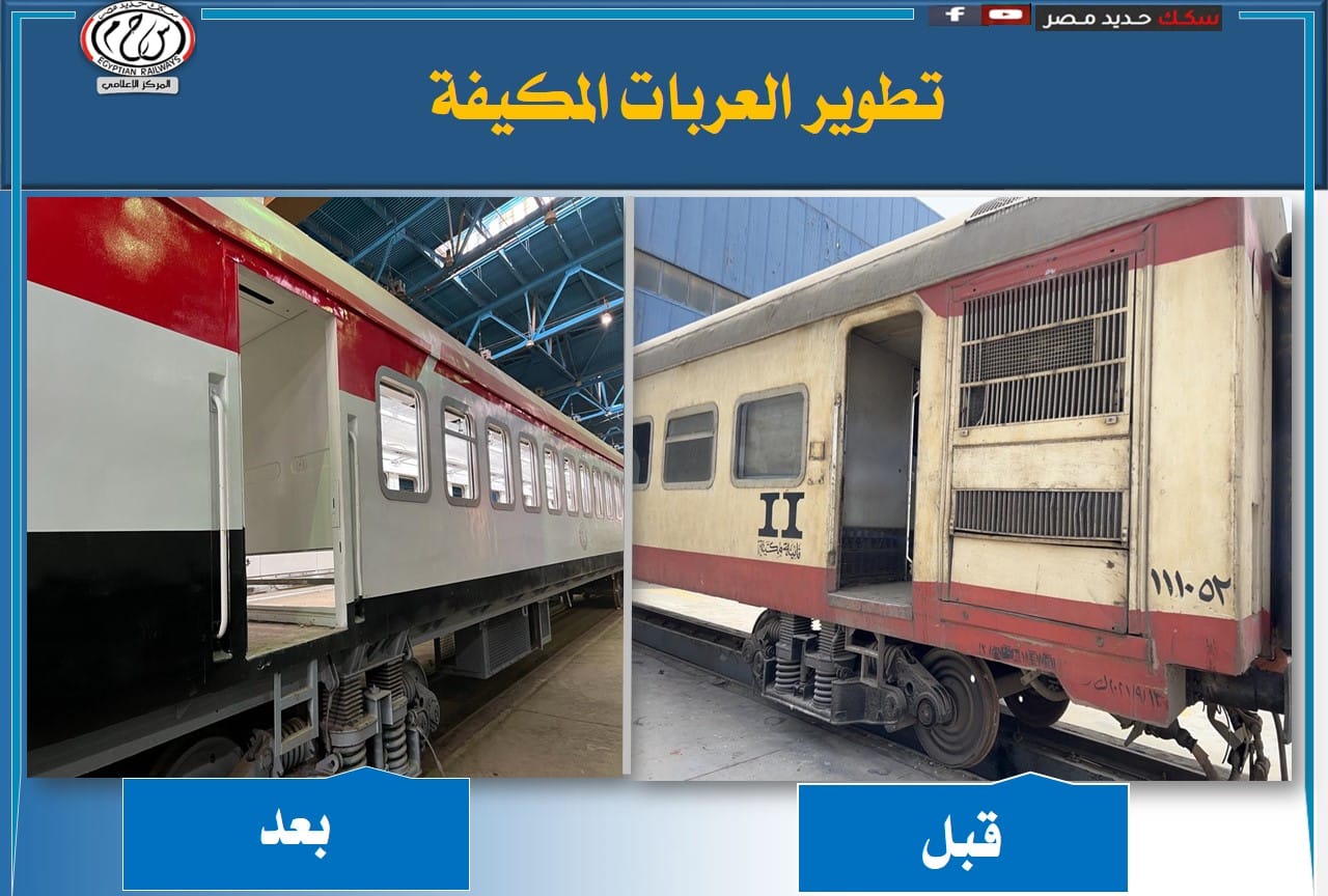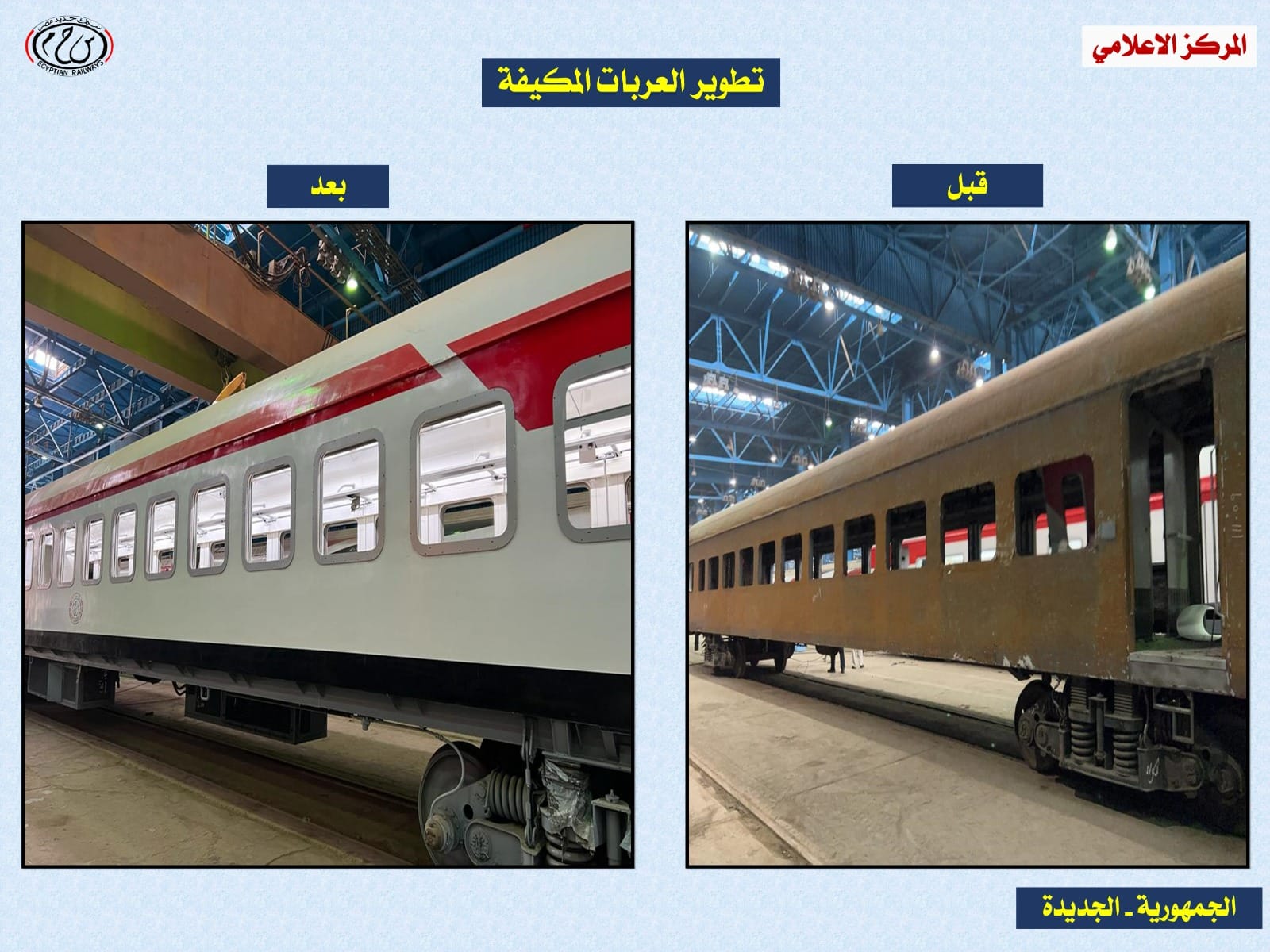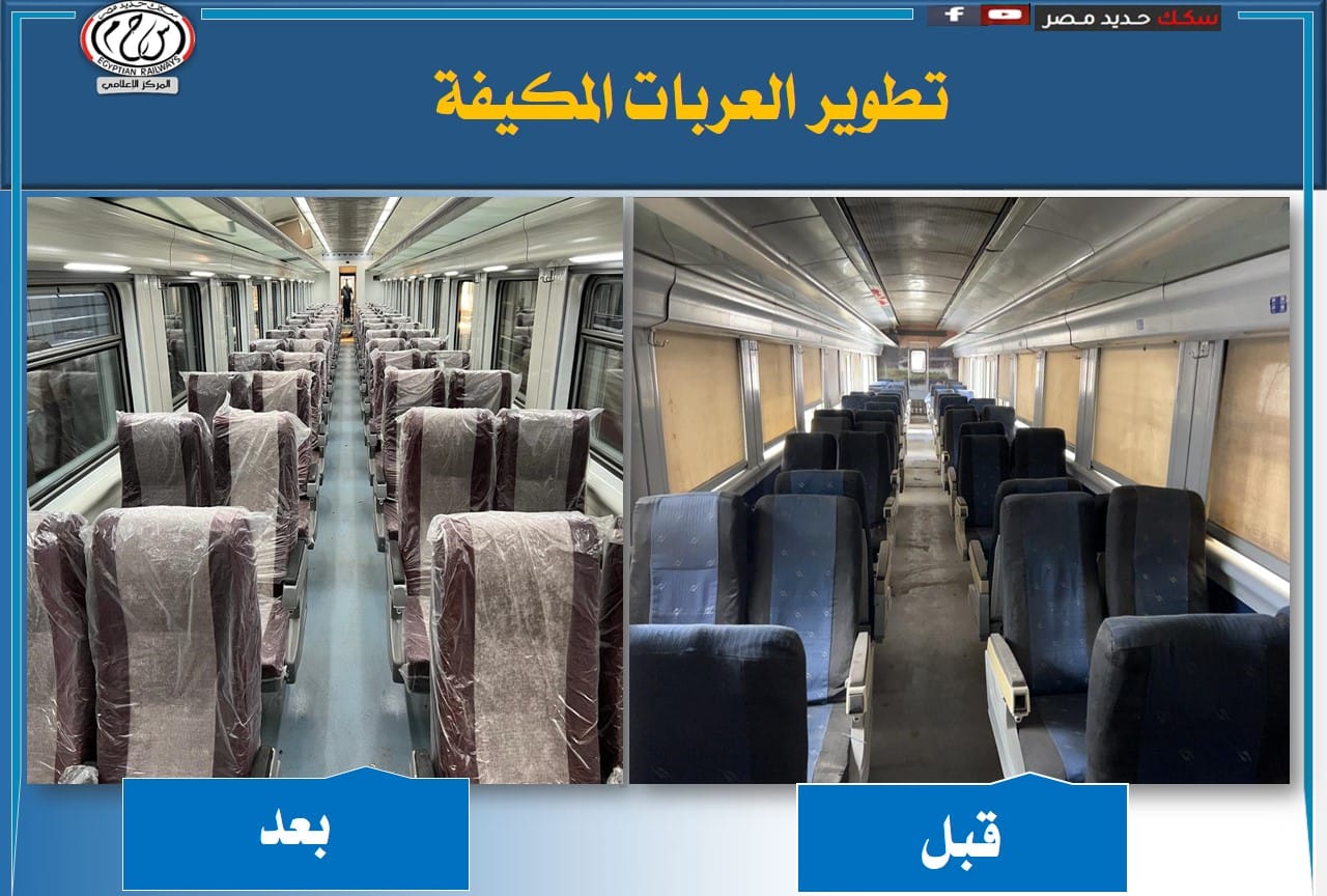 وشاهد الوزير عربات من الدرجة الأولى والثانية والبوفيه التي تم الانتهاء منها، كما تفقد الوزير أعمال تطوير وإعادة تأهيل وتحديث القطار الإسباني الثاني، ضمن خطة تطوير وإعادة تأهيل وتحديث 10 قطارات إسباني، حيث يتكون كل قطار من عربة بوفيه و4 عربة درجة أولى و6 عربات درجة ثانية، ووجه الوزير بضرورة أن تكون كل التشطيبات على أعلى مستوى.