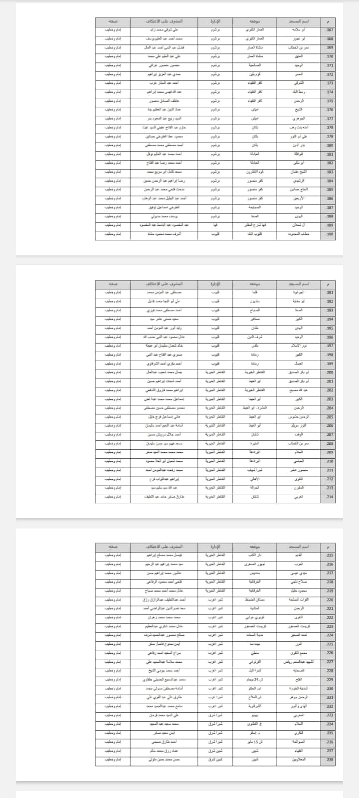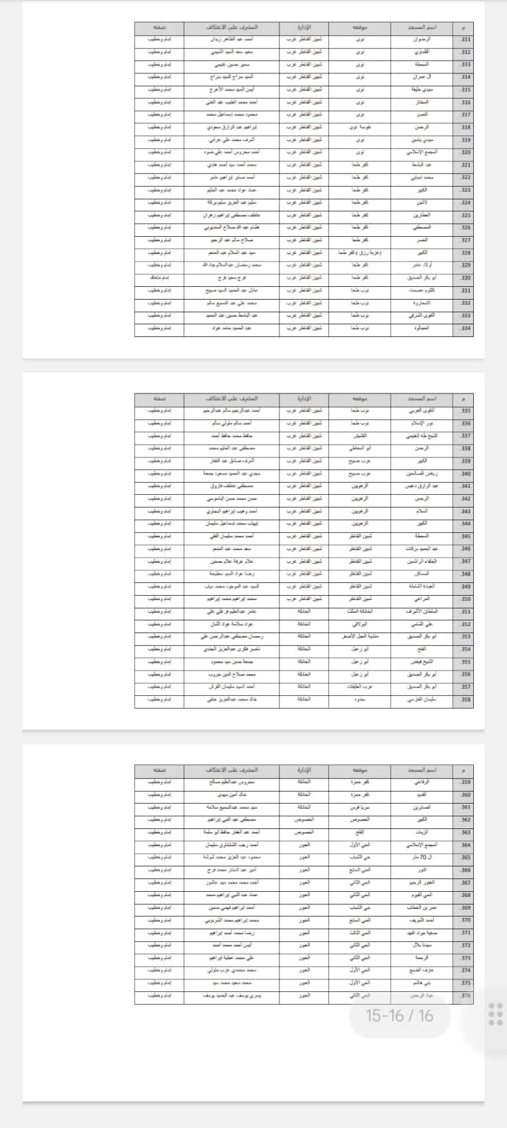ومن ضمن المساجد التي حددتها وزارة الأوقاف ( عمر بن الخطاب،الأشراف، الفتح،المتولي).