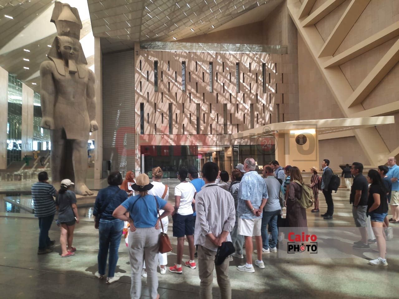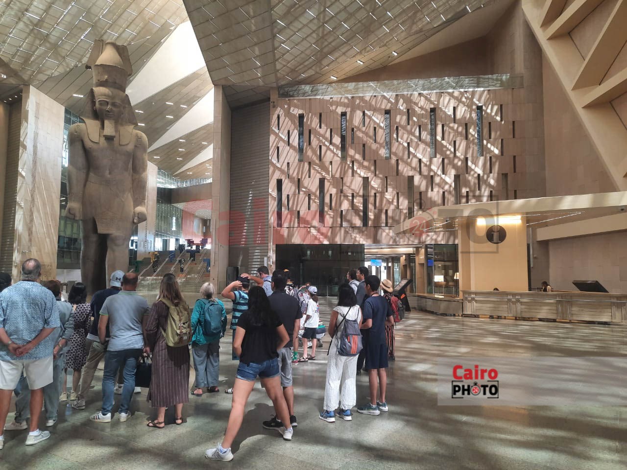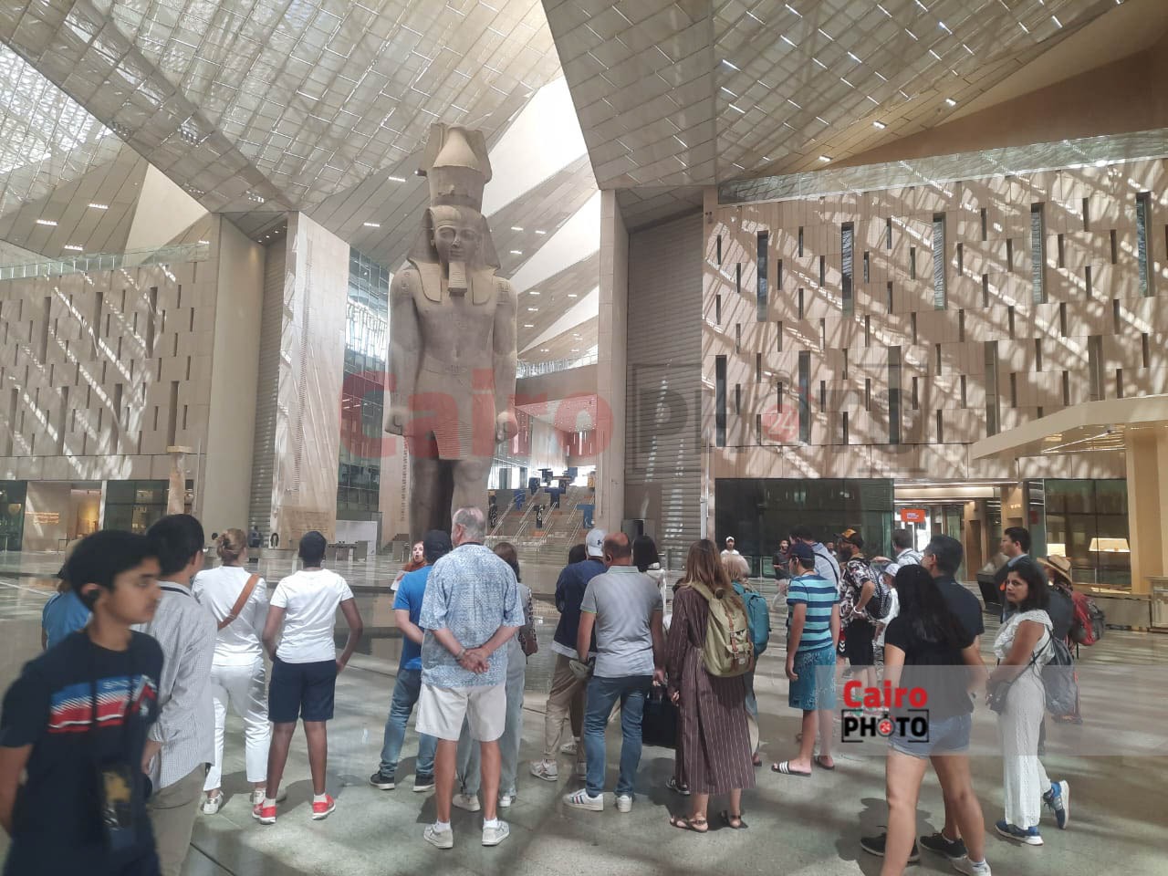 الصور الأولى لتمثال الملك رمسيس الثاني بالمتحف المصري الكبير بعد سقوط الأمطار عليه