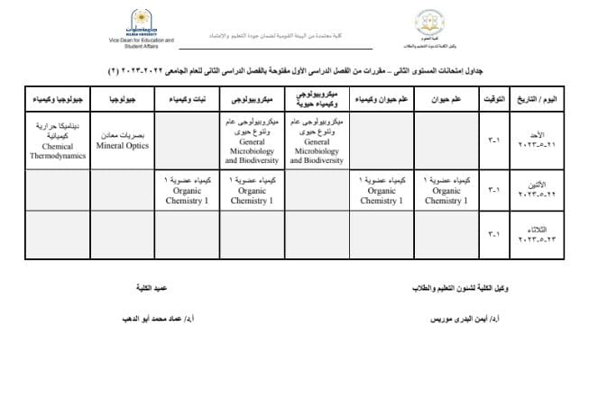 علوم حلوان تعلن جداول مقترحة لامتحانات الترم الثاني لمناقشة الطلاب بشأنها| صور