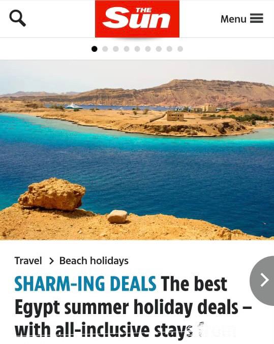 فتحت عنوان "أفضل عروض وبرامج سياحية للإجازات الصيفية في مصر" أكدت صحيفة The Sun الإنجليزية أن مصر تعد مقصدًا سياحيًّا متميزًا لقضاء إجازة الصيف، كما أنها موطن لعدد من أشهر عجائب الدنيا القديمة، مشيرة إلى العديد من الأماكن السياحية والأثرية التي يمكن زيارتها مثل أهرامات الجيزة وتمثال أبو الهول ومعابد الأقصر والكرنك، إلى جانب العديد من الأنشطة التي يمكن ممارستها، مثل: ركوب الخيل والجمال ورحلات البالون الطائر ورحلات السفاري، علاوة على زيارة الأسواق، هذا فضلًا عن وجود العديد من الشواطئ الخلابة للاسترخاء وممارسة الرياضات المائية، كما تشتهر مصر بوجود العديد من الفنادق والمنتجعات السياحية المتميزة مثل تلك الموجودة بمدن شرم الشيخ والغردقة.