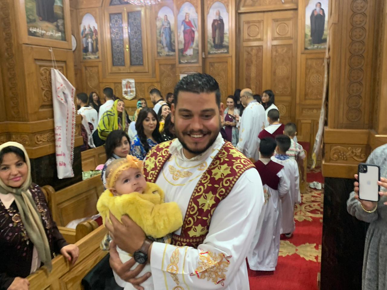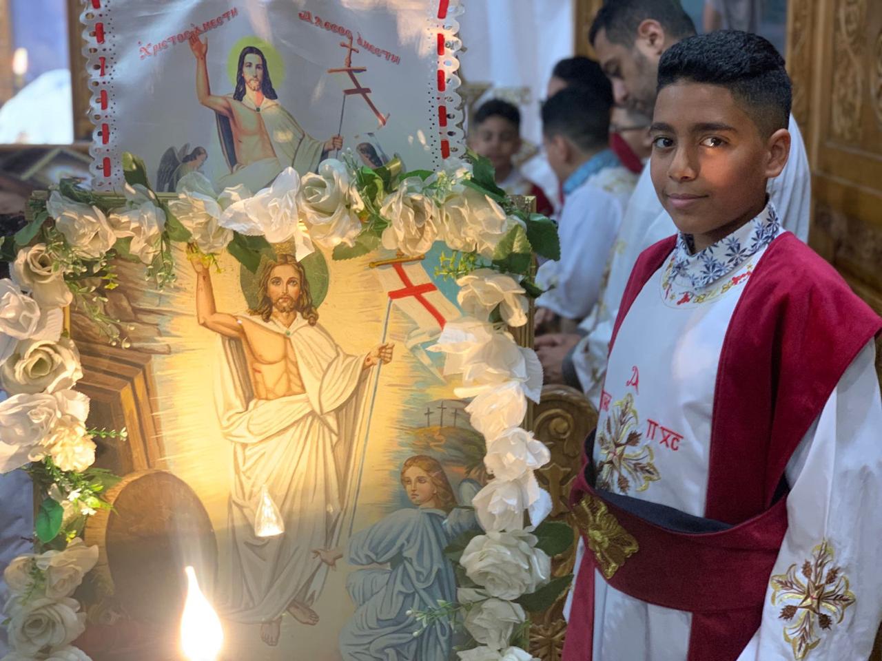 وظهر صغار الشمامسة بالزي الأبيض الخاص بهم خلال القداس، وارتسمت الابتسامة على وجوههم في أجواء من الفرحة، وأضافوا للأجواء حالة من السعادة والبهجة.