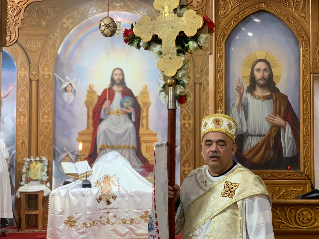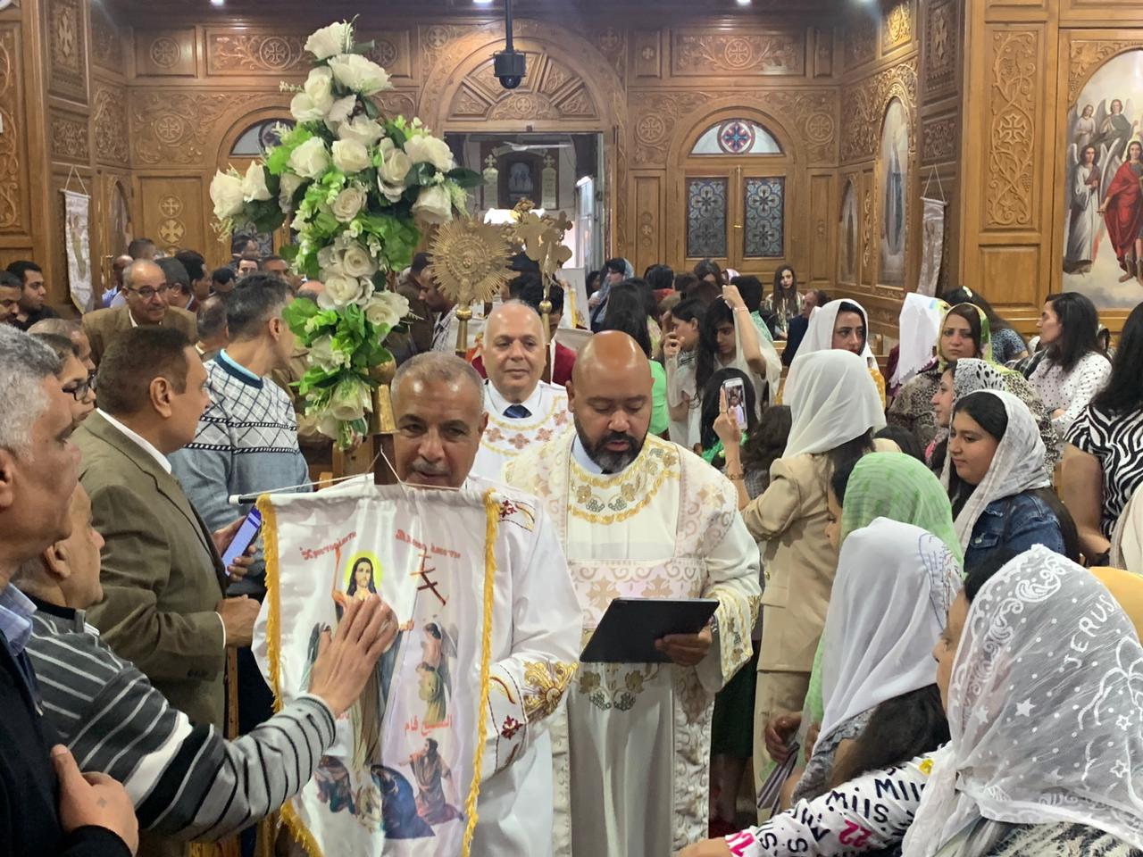 أدى القداس كهنة الكنيسة القمص بولا سعد، والقس بيمن صابر، والقس أرميا فهمي، بمشاركة شمامسة الكنيسة والعشرات من شعب الكنيسة من الأخوة الأقباط، الذين تواجدوا من قبل بدء القداس وحرصوا على المشاركة في القداس حتى انتهائه.