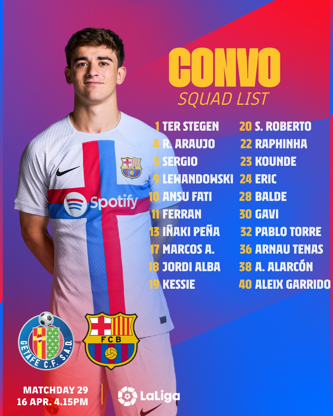 ويعتلي برشلونة صدارة جدول ترتيب الدوري الإسباني 2022/2023 برصيد 72 نقطة، بينما يحتل فريق خيتافي المركز السادس عشر برصيد 30 نقطة.