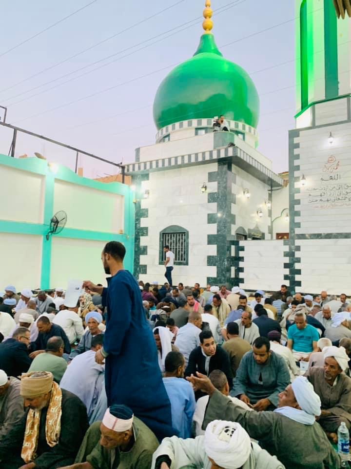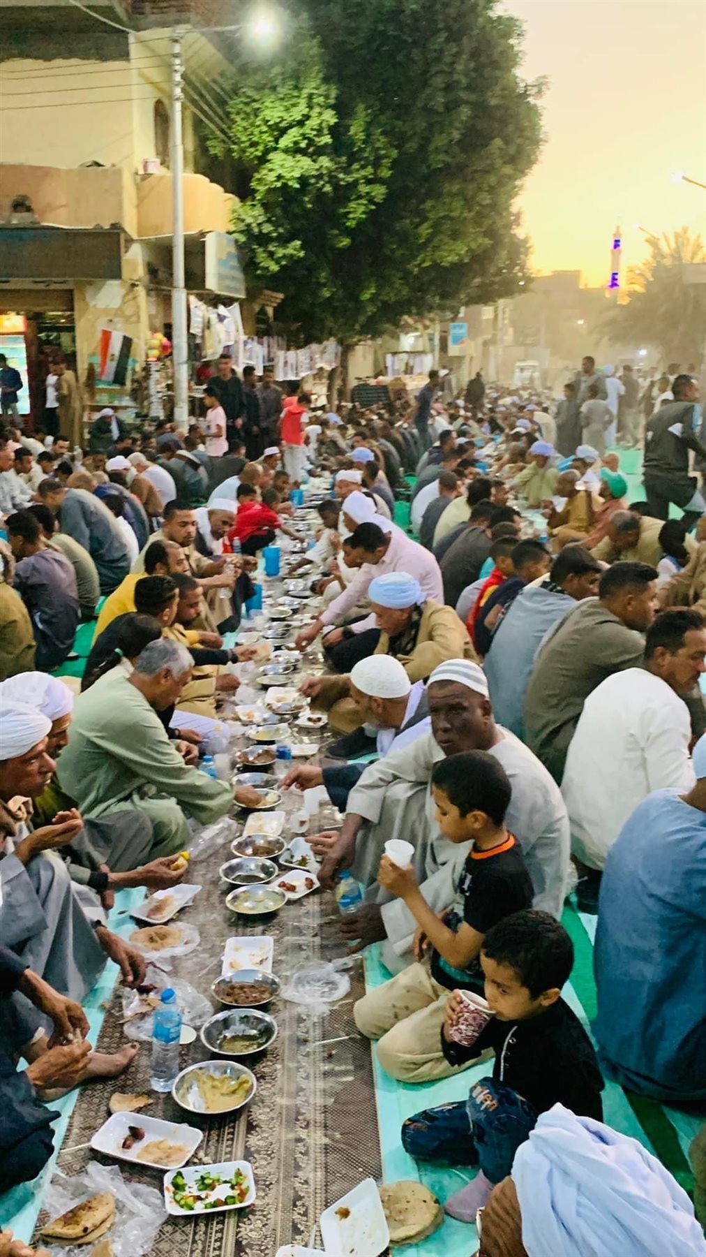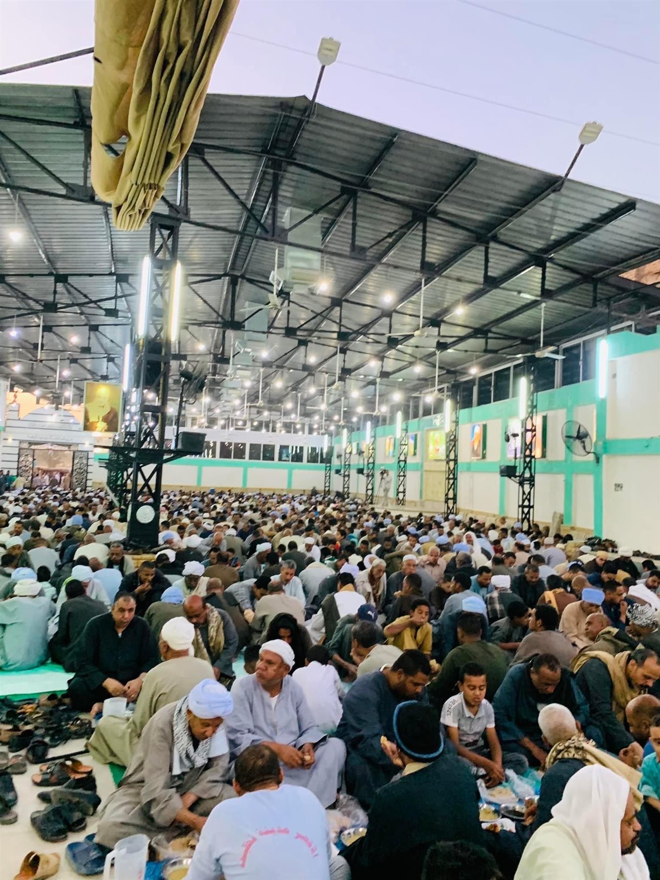 وامتدت مائدة الإفطار مكسوة بشتى أنواع الأطعمة والعصائر من أول القرية وحتى ما بعد الساحة مفترشة الشوارع والأراضي الزراعية المحيطة في مشهد مهيب لحضور الآلاف من محبي الساحة من مختلف محافظات مصر والذين تدفقوا كأمواج البحر ليملؤو الساحة عن أخرها ومحيطها.