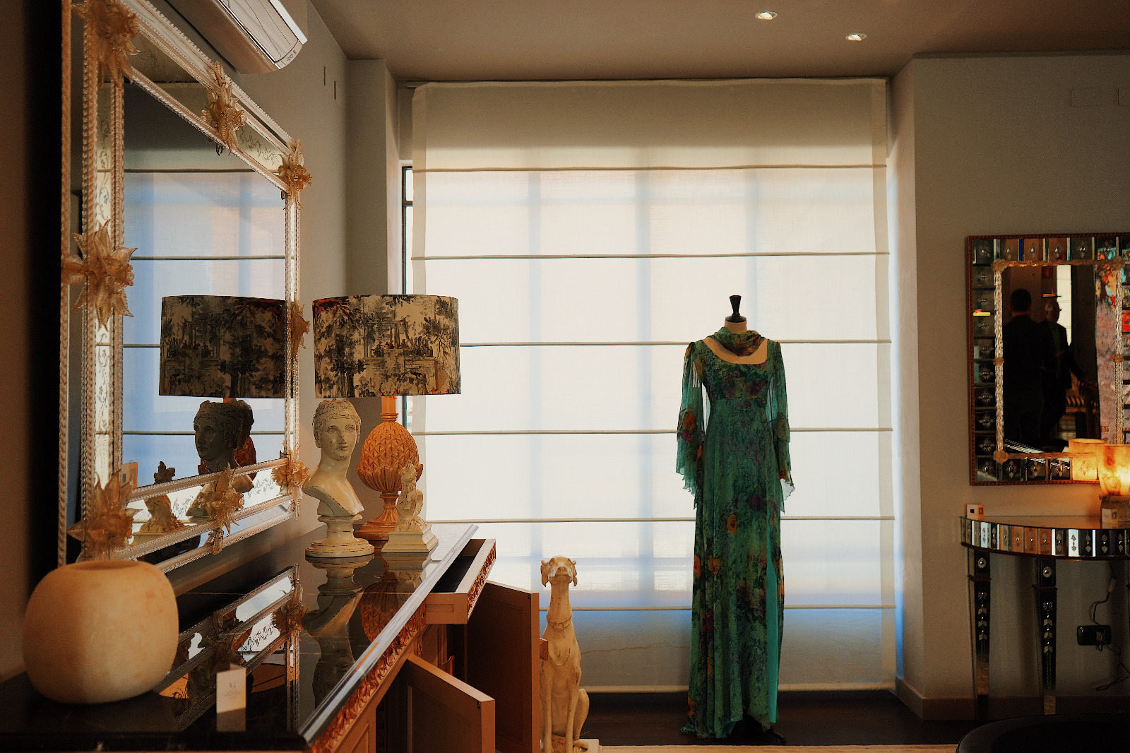 وقام فريق إيطالي مصري من المتخصصين في مجال التصميم والهندسة المعمارية، والاتصالات وتنظيم الفعاليات بابتكار المعرض الذي يقدم تصورا لشكل الحياة المعاصرة في منزل كليوباترا وأنطونيو في شقتهما في ميلانو بعد أن تزوجا وأصبح لديهما أبناء في سن الشباب هما ليو ورايا، من خلال تصميمات تقدم التراث الثقافي التقليدي، والطقوس والتقاليد، وتعامل الأبناء مع الثقافة المشتركة بشكل عصري وأيضا التفاعل الافتراضي.