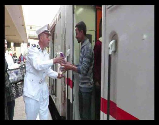 رجال الشرطة يوزعون وجبات الإفطار على الصائمين
