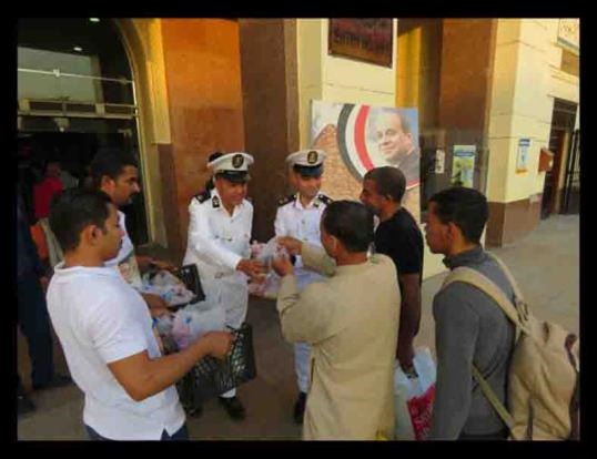 وفي إطار مبادرة كلنا واحد، قام رجال الشرطة بتوزيع وجبات الإفطار على المواطنين بالميادين العامة والطرقات ممن تصادف تواجدهم أثناء وقت الإفطار.
