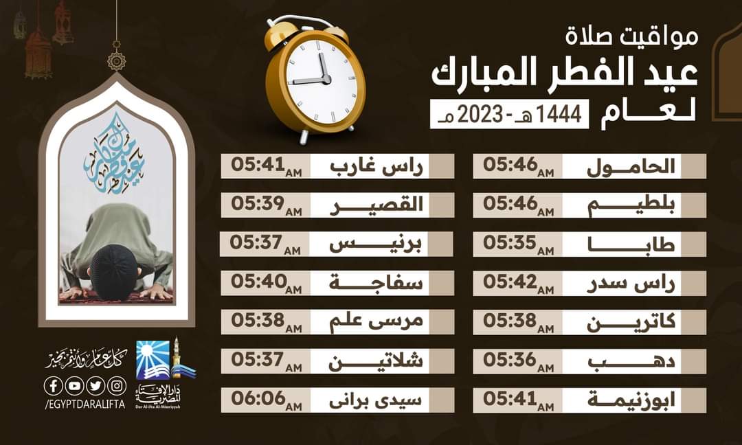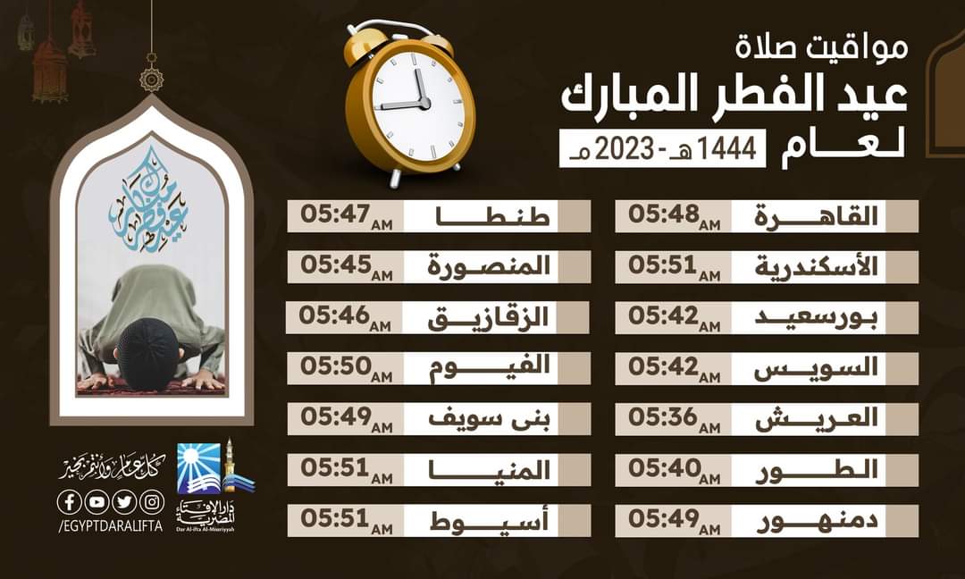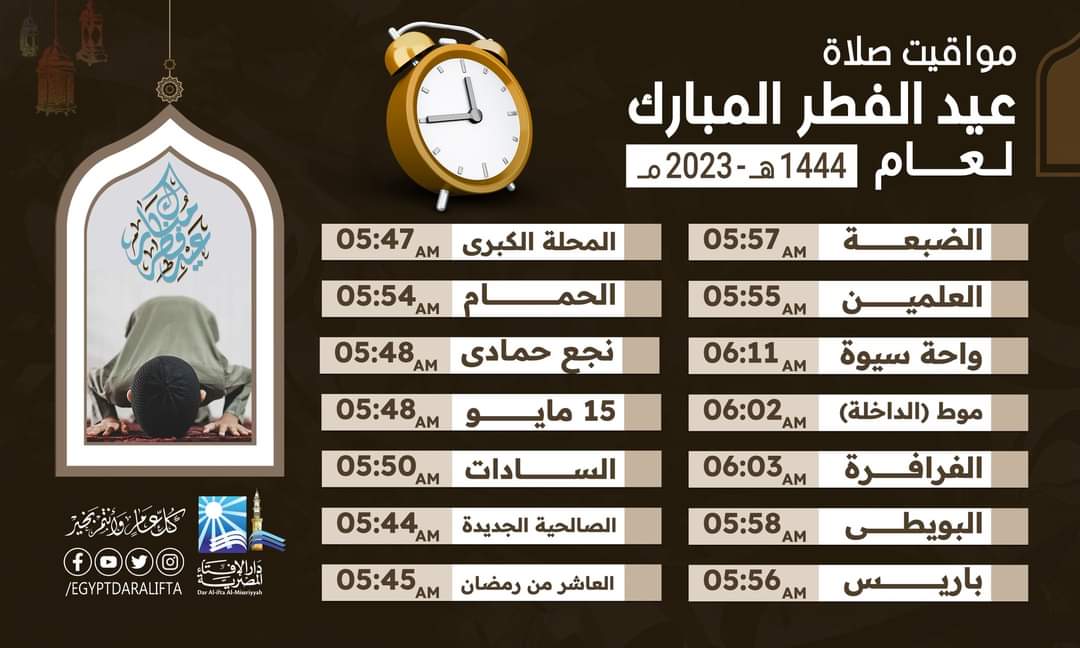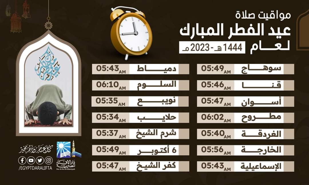 موعد صلاة عيد الفطر المبارك 2023 بجميع محافظات مصر