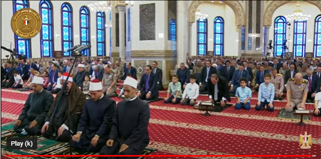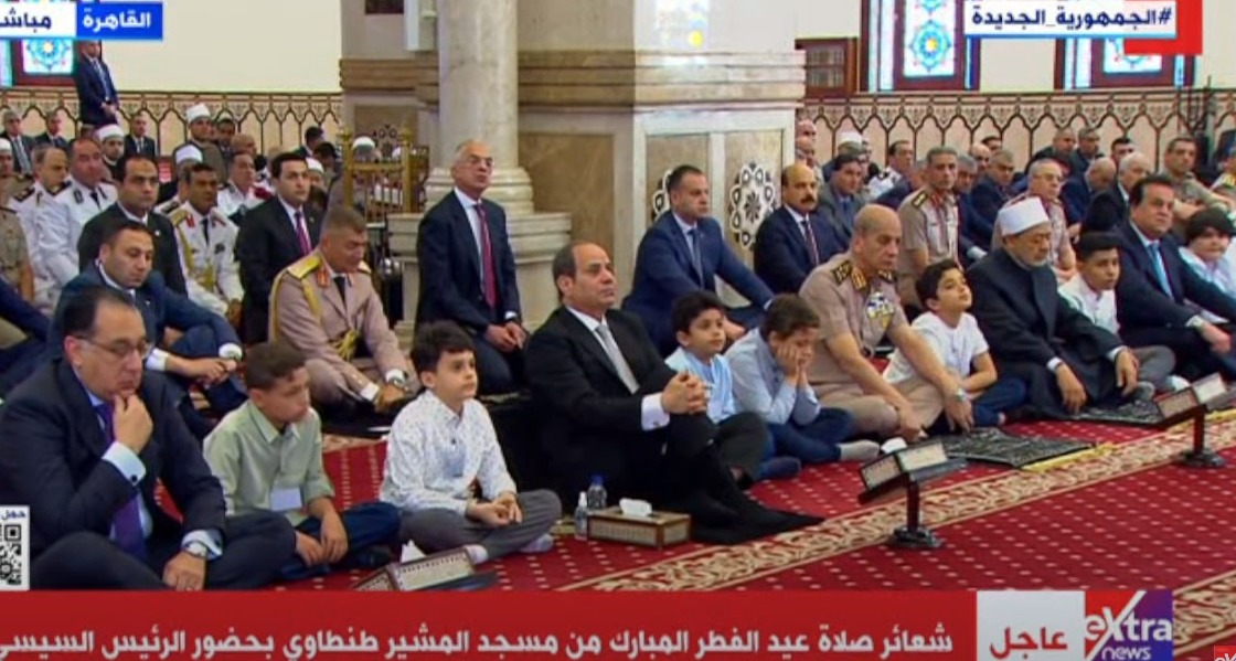 يأتي ذلك بعد أن وصل الرئيس عبد الفتاح السيسي، منذ قليل، إلى مسجد المشير طنطاوي، من أجل أداء صلاة عيد الفطر المبارك.