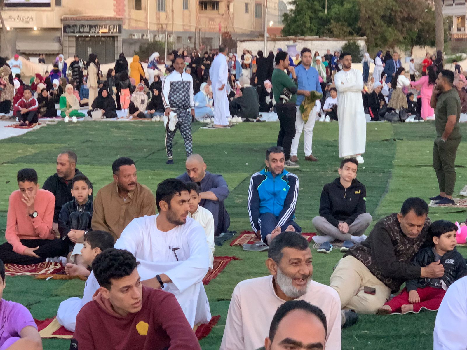 بدأ المواطنون من أبناء محافظة بورسعيد في التوافد على ساحات صلاة العيد، وذلك لأداء الصلاة، وحمل المصلون سجادة الصلاة ولبسوا الجلابية، وذلك وسط أجواء من الفرحة.