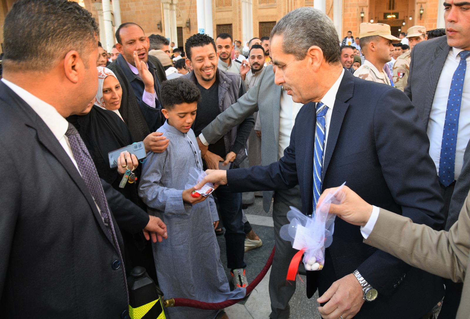 محافظ الغربية يؤدي صلاة العيد بالسيد البدوي ويوزع الهدايا على الأطفال