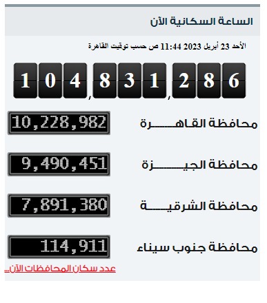 ووفقا لـ بيانات الجهاز المركزي للتعبئة العامة والإحصاء، ارتفع عدد سكان مصر خلال آخر 110 أيام، بنحو 423 ألف نسمة خلال أقل من 4 أشهر.