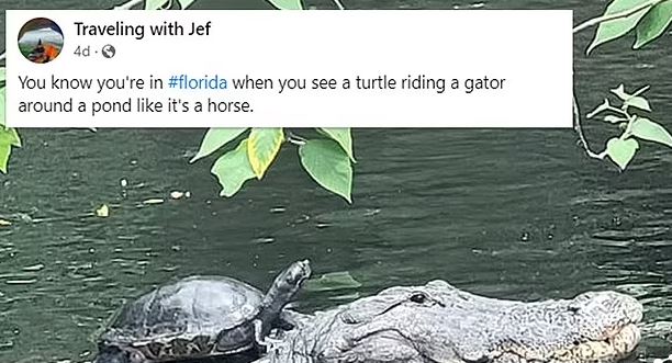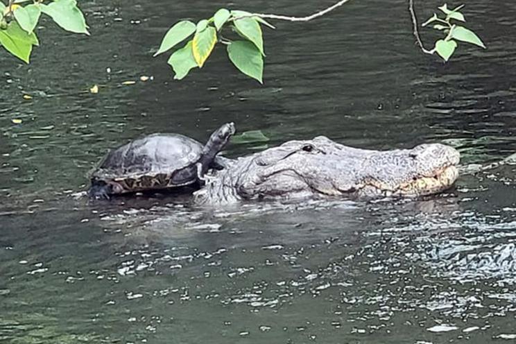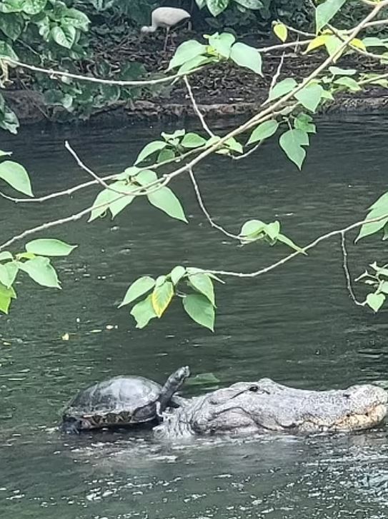 التقط مصور مهتم بالتقاط صور مميزة للحيوانات، صورة مميزة لسلحفاة تمتطي تمساحا كأنهم صديقين، وذلك خلال رحلته في تامبا بولاية فلوريدا، حيث رأى المصور أن المشهد نادر فالتقط الصورة سريعًا.