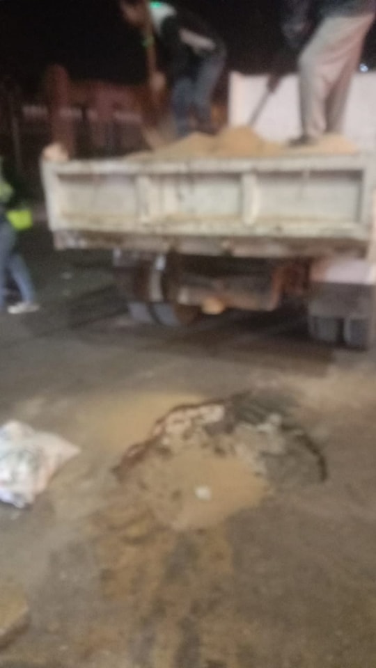 وعلى الفور توجه إدارة المتابعة بالحي، وفحص سبب الهبوط والذي تبين أنه بالفعل ناتج عن تسريب مياه الصرف من البيارة، وتم إصلاح الهبوط الأرضي والعمل على إصلاح تسريب المياه من البيارة.