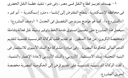 وأوضح عدد الجريدة الرسمية، أن المشروع سالف الذكر لـ تعزيز قطاع النقل فى مصر، وفي ضوء تنفيذ خطة النقل الحضري في محافظة الإسكندرية، يتطلع المقترض إلى إنشاء مترو إسكندرية – أبو قير، حيث سيعمل هذا المشروع على تحسين مستوى خدمة الخط وتوفير وسيلة نقل فعالة وشاملة ومنخفضة الكربون من هذا المنظور، تم تقديم طلب للوكالة الفرنسية للتنمية لتقديم الدعم المالي للحكومة المصرية.