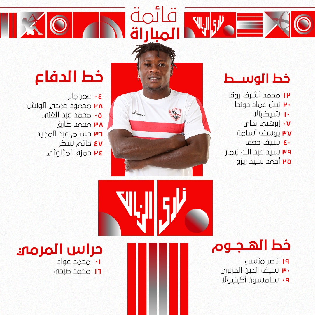 - خط الوسط: محمد أشرف روقا، نبيل عماد دونجا، سيف جعفر، أحمد سيد زيزو، إبراهيما نداي.