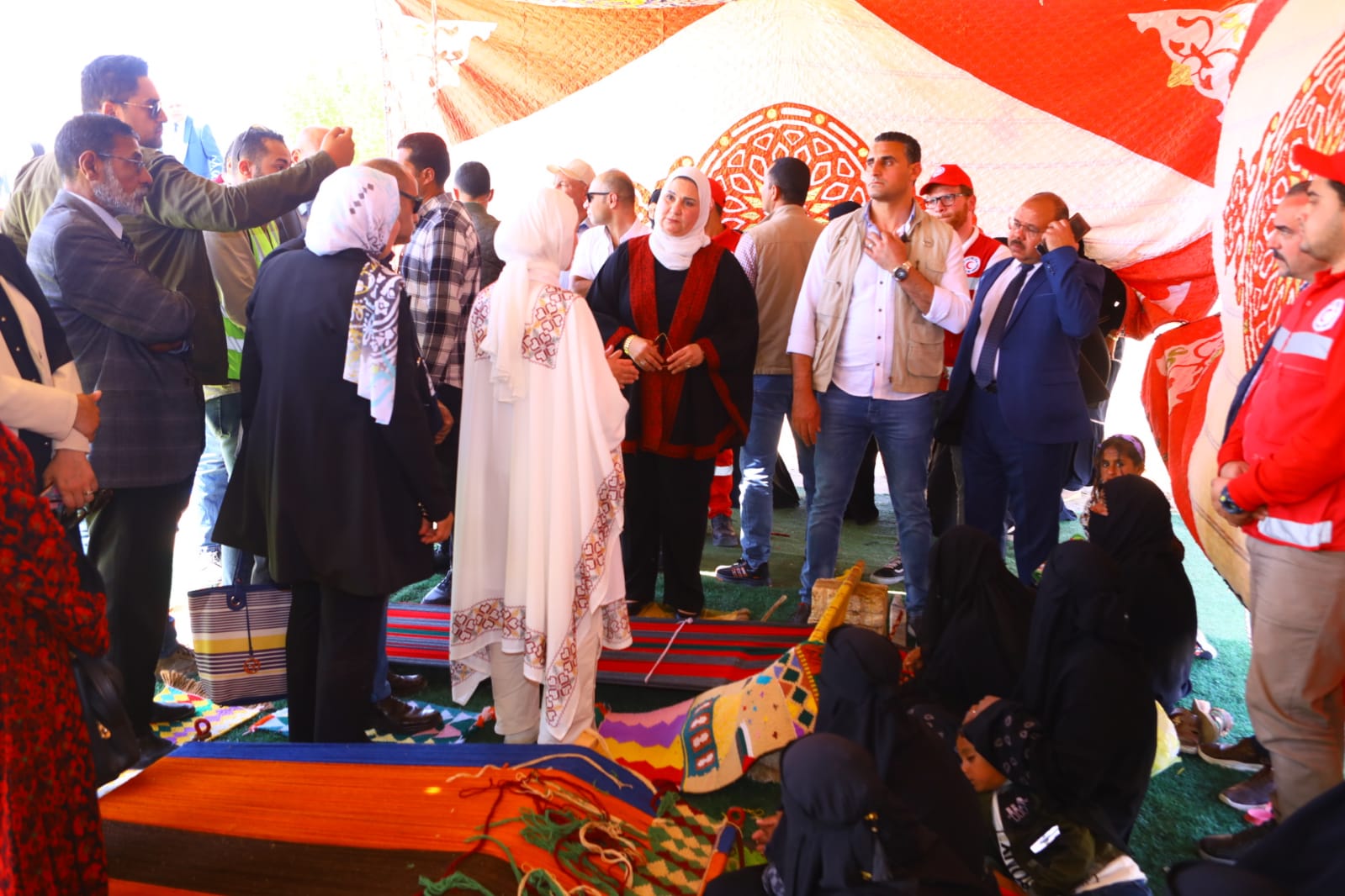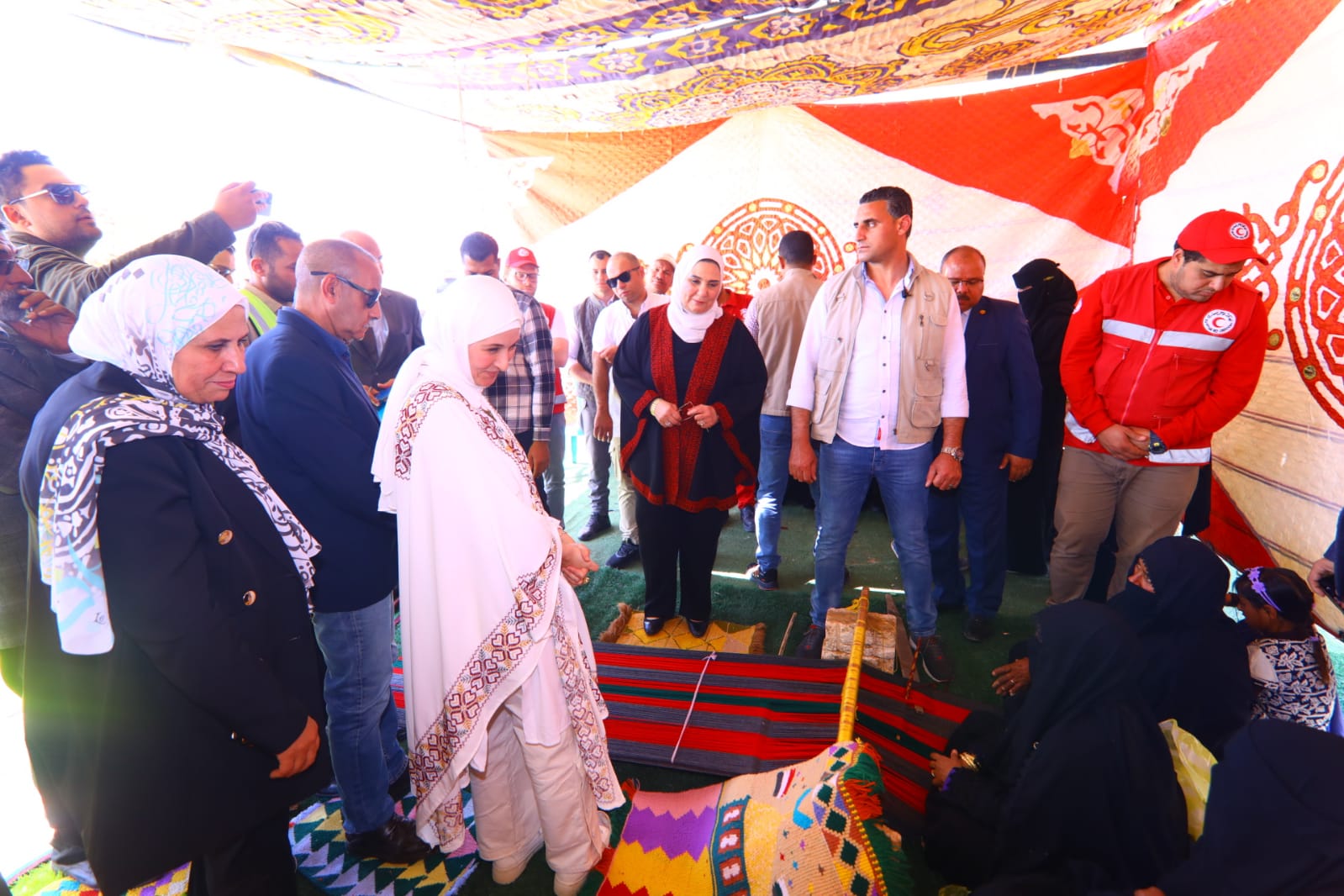 وزيرة التضامن تلتقي أسر شهداء بئر العبد وصيادي البردويل ومتطوعي الهلال الأحمر بشمال سيناء | صور