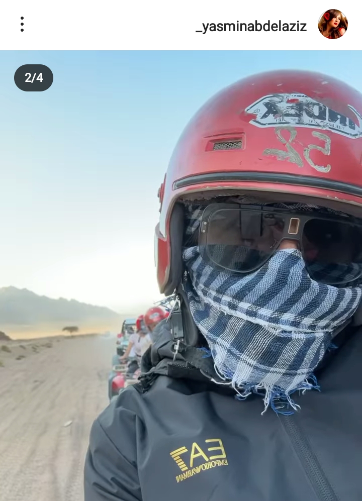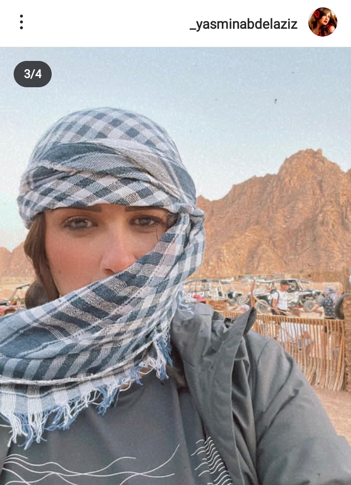 ونشرت ياسمين عبد العزيز، الصور عبر حسابها الشخصي بموقع انستجرام وظهرت خلالها، وهي تستمع بالأجواء الصيفية وإجازتها من خلال رحلات السفاري في إحدى الصحراء.