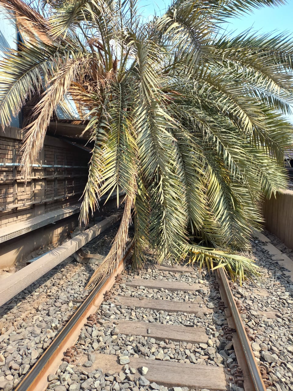 وقال بكير إن هناك نخلة كانت خارج سور محطة قطار مترو الأنفاق بشبرا الخيمة، سقطت بجوار قطار مترو الأنفاق دون أن تتسبب في وقوع أي خسائر بشرية أو تعطل حركة سير المترو.