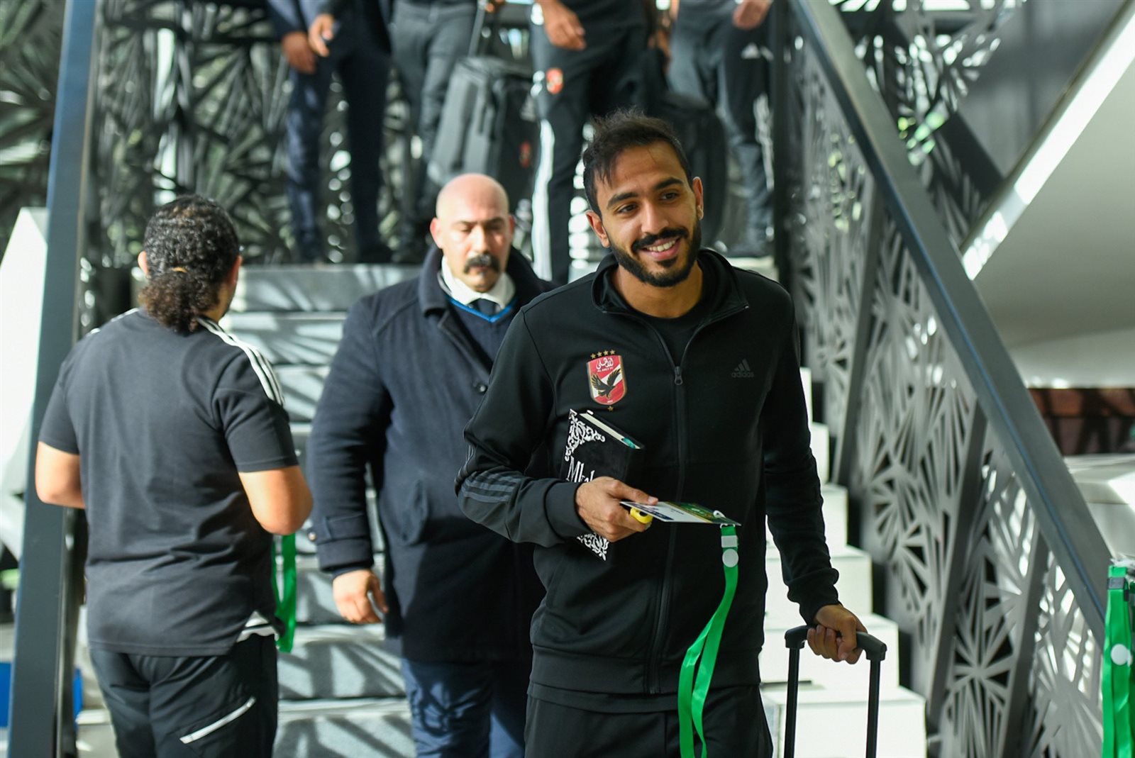 غادرت بعثة الفريق الأول لكرة القدم بالنادي الأهلي في المغرب، برئاسة محمد الغزاوي عضو مجلس الإدارة، مقر إقامة البعثة في الدار البيضاء في طريقها إلى ملعب مركب محمد الخامس.