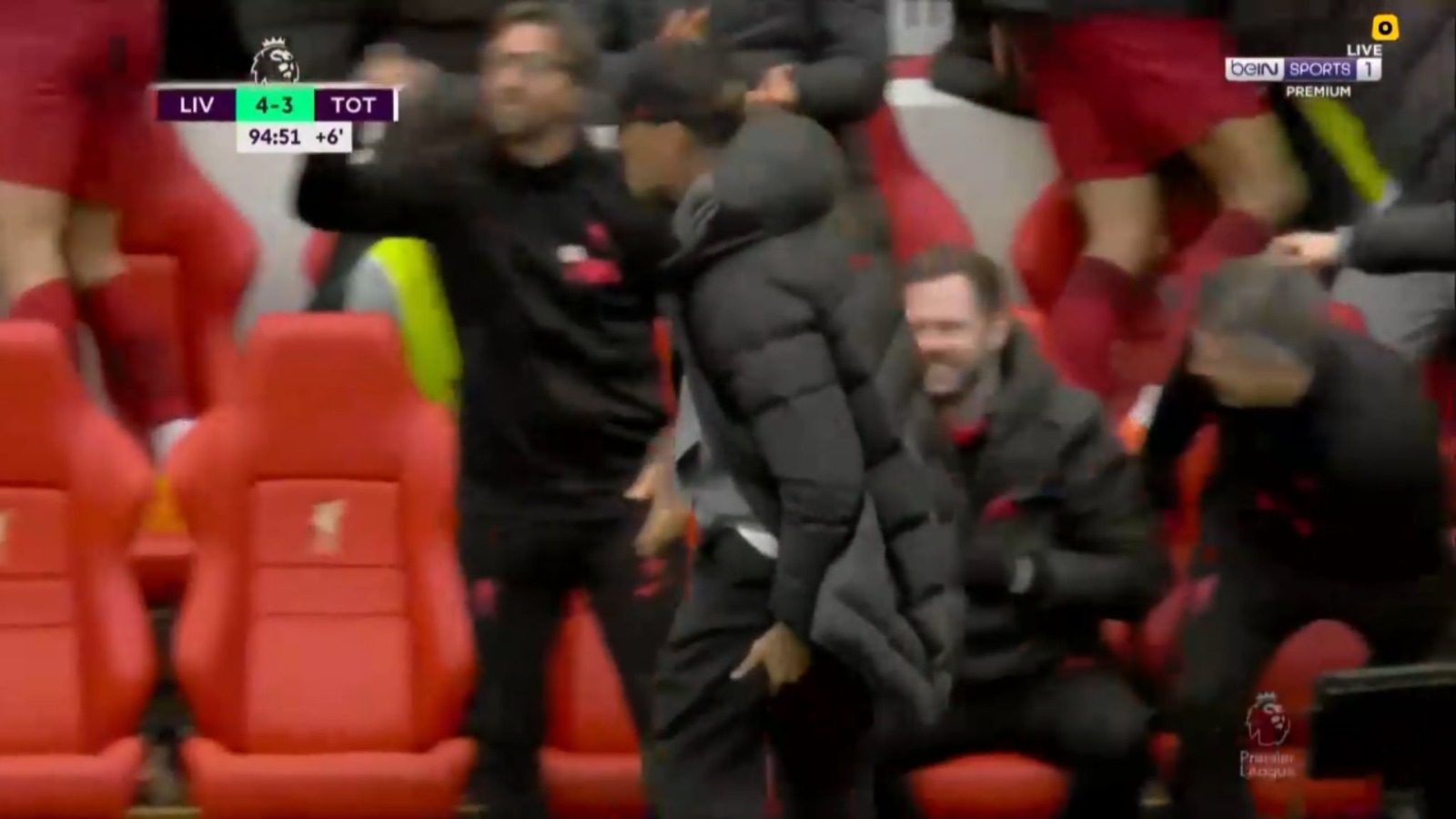 واحتفل كلوب بطريق هيسترية بعد أن تمكن البرتغالي دييجو جوتا في الدقيقة 94 من التسجيل، وذهب للاحتفال أمام الحكم الرابع، والتقطته كاميرات التلفزيون وهو عائد لمقاعد بدلاء فريقه، ولكنه يمسك بالعضلة الخلفية، التي يبدو أنها إصابة بشد في العضلة الخلفية.