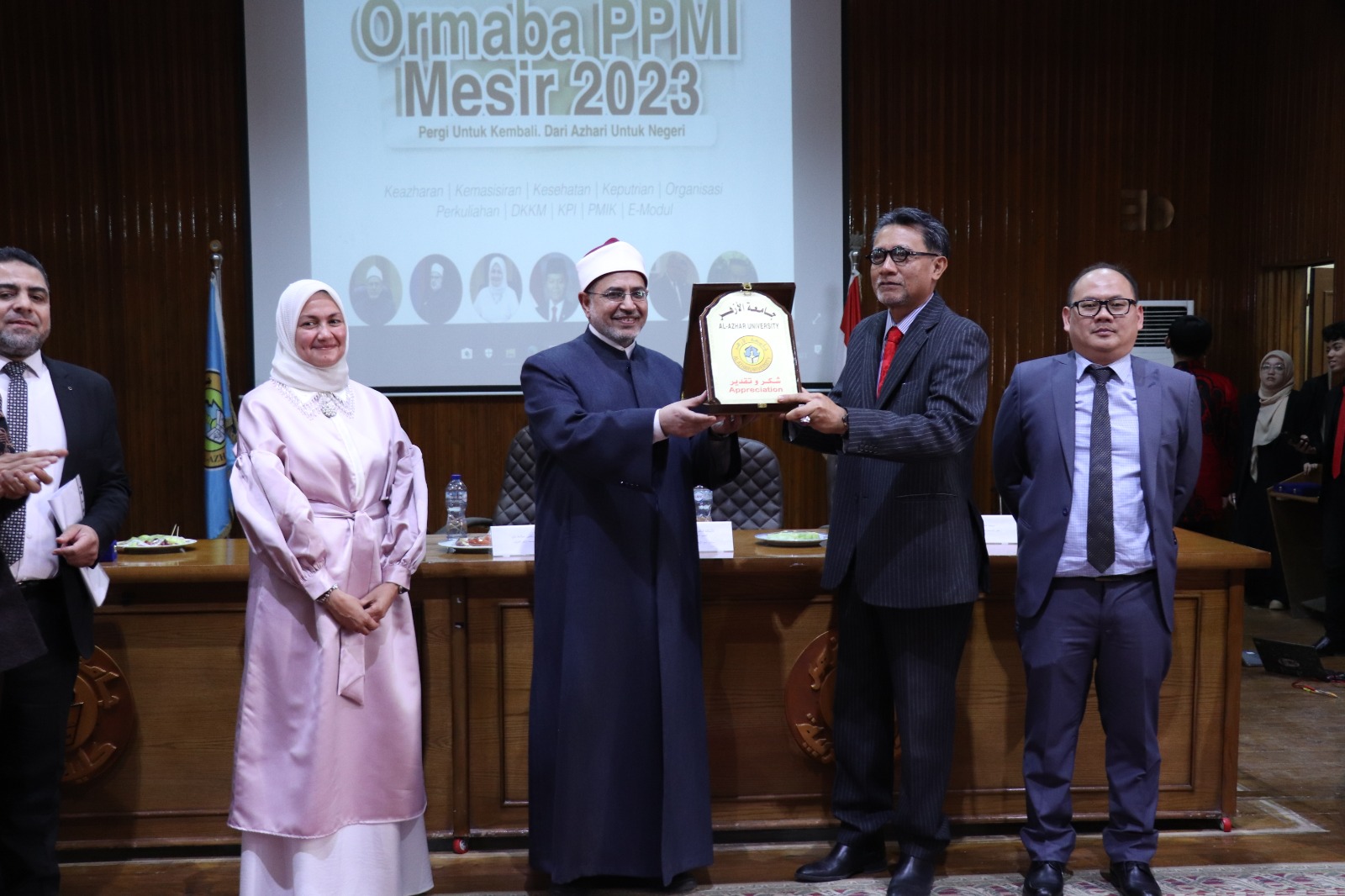 ونقل رئيس الجامعة للحاضرين تحيات الإمام الأكبر الدكتور أحمد الطيب، شيخ الأزهر الشريف، الذي يجعل أبناءه الطلاب والطالبات الوافدين نصب عينه دائمًا، مشيرًا إلى أن طلاب إندونيسيا الدارسين في الأزهر الشريف قديمًا كان لهم رواق يدرسون فيه، إضافة إلى أروقة أخرى يدرس فيها الطلاب من مختلف دول العالم، مما يعد تأكيدًا على عالمية رسالة الأزهر الشريف على مدار أكثر من ألف عام، كونه كعبة العلم وقبلة العلماء في مختلف دول العالم، تلك المؤسسة العلمية التي تدرس المذاهب الفقهية المختلفة، بهدف اتساع رؤية طالب العلم وأن يؤمن بالرأي والرأي الآخر وهذه ميزة التعليم في الأزهر الشريف، وتأكيدًا على التنوع في مجالات العلوم المختلفة نجد أيضًا في مجال العلوم العربية المدرسة البصرية، والمدرسة الكوفية، والمدرسة البغدادية، والمدرسة المصرية، وهذا كله دليل على التنوع الذي تتميز به الدراسة في الأزهر الشريف مهد الوسطية والاعتدال في العالم.