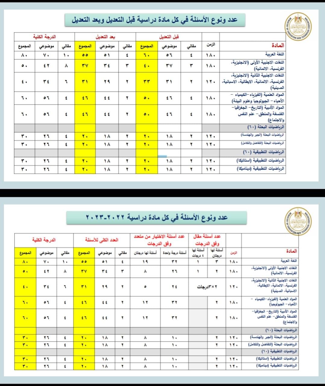 كشف الدكتور رضا حجازي وزير التربية والتعليم والتعليم الفني، عدد ونوع الأسئلة في امتحانات الثانوية العامة 2023، في جميع المواد والتي جاءت كالتالي: