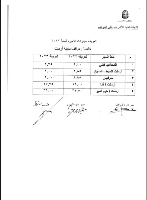 و تنشر القاهرة 24 بالصور أسعار التعريفة الجديده لسيارات الأجرة بمواقف محافظة الأقصر ( الأقصر - أرمنت - القرنة - إسنا ) وكذلك أسعار تعريفة الركوب من الأقصر للمحافظات المجاورة.