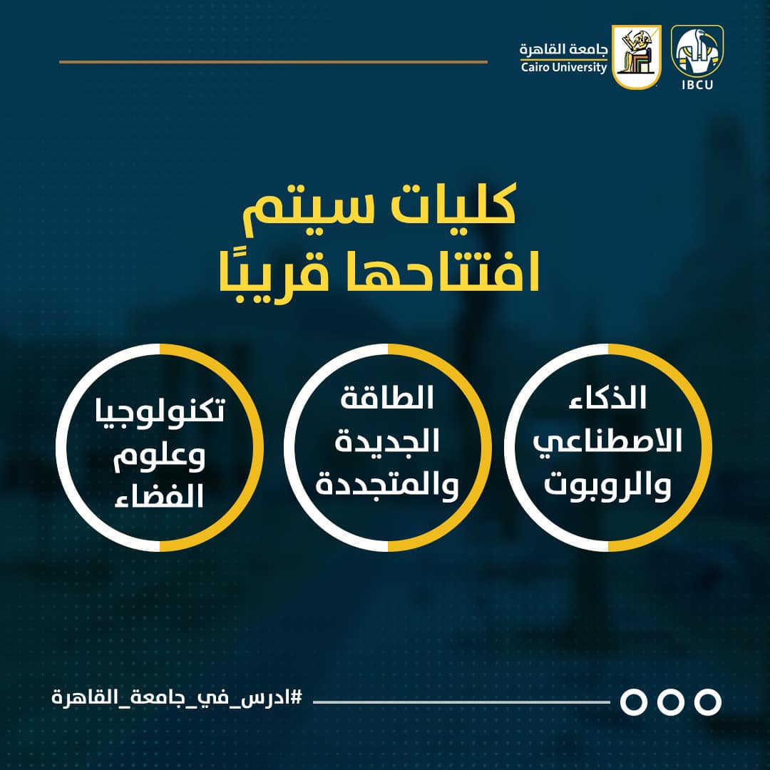 كشفت جامعة القاهرة، عن افتتاح 3 كليات قريبًا وهي: كلية الذكاء الاصطناعي والروبوت، وكلية الطاقة الجديدة والمتجددة، وكلية تكنولوجيا وعلوم الفضاء، مشيرة إلى أن افتتاح الكليات الثلاث يأتي في إطار عمل جامعة القاهرة على افتتاح جامعة القاهرة الدولية بمدينة 6 أكتوبر والتي تعد أول جامعة برامج على مستوى العالم، حيث تبدأ الدراسة بها في 35 برنامجا في تخصصات عديدة.