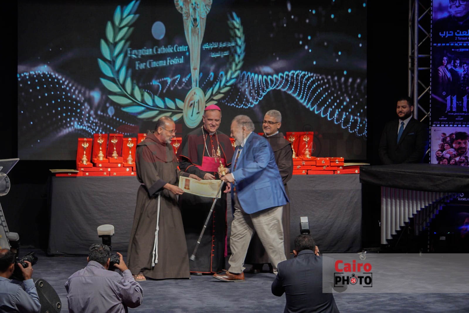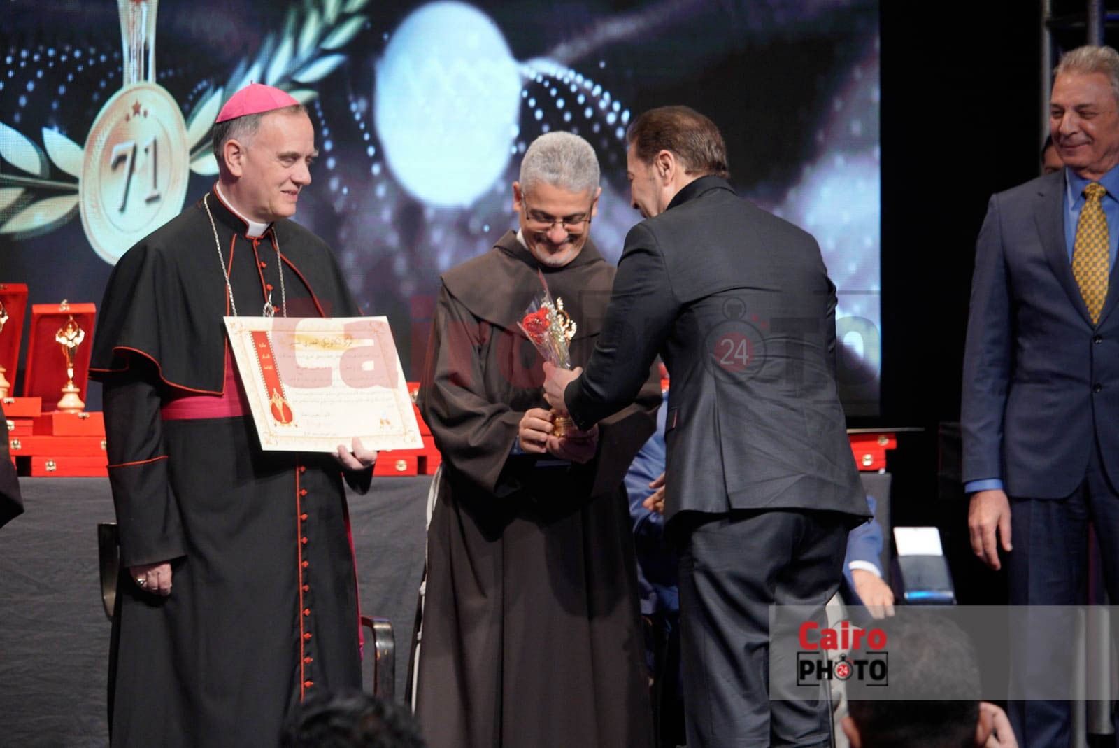 أقيم حفل افتتاح الدورة الـ 71 من مهرجان المركز الكاثوليكي للسينما، برئاسة الأب بطرس دانيال، اليوم بقاعة النيل للآباء الفرنسيسكان، لتكريم الفنان يحيى الفخراني والفنان محمود حميدة، ومجموعة أخرى من الفنانين.