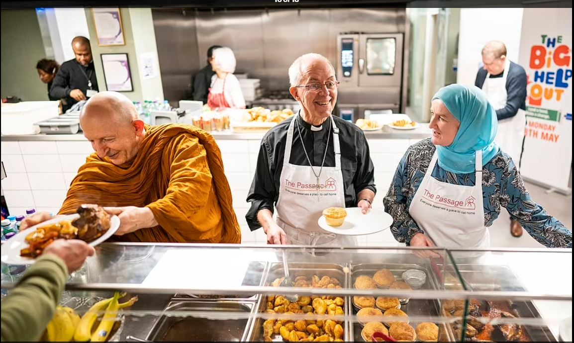ووسط الاستعدادات والصور التي تنقلها وكالات الأنباء الدولية والصحف العالمية التي تغطي الحفل إعلاميًا، جاءت صورة سيدة محجبة تجهز الطعام وتوزعه صحبة رئيس الأساقفة البريطاني استعدادًا للحفل المهيب.