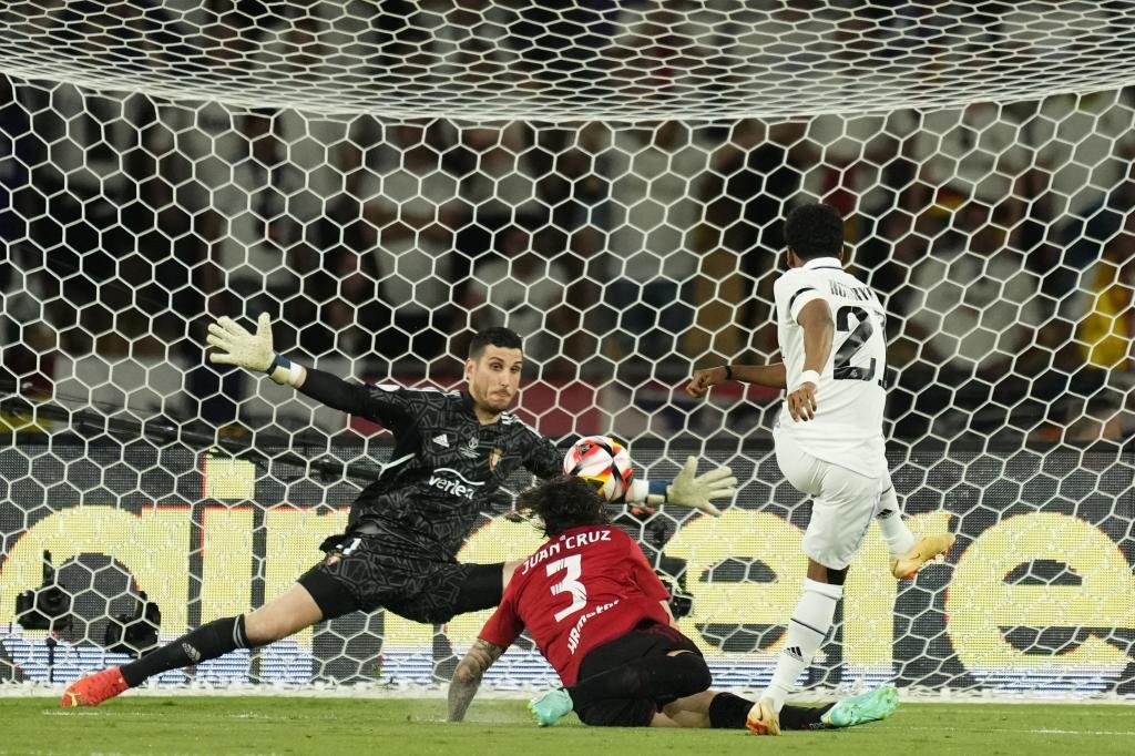 افتتح ريال مدريد نتيجة اللقاء في الدقيقة 2، بعد أن راوغ فينسيوس جونيور دفاع أوساسونا، ليصنع الهدف الأول الذي أحرزه رودريجو.