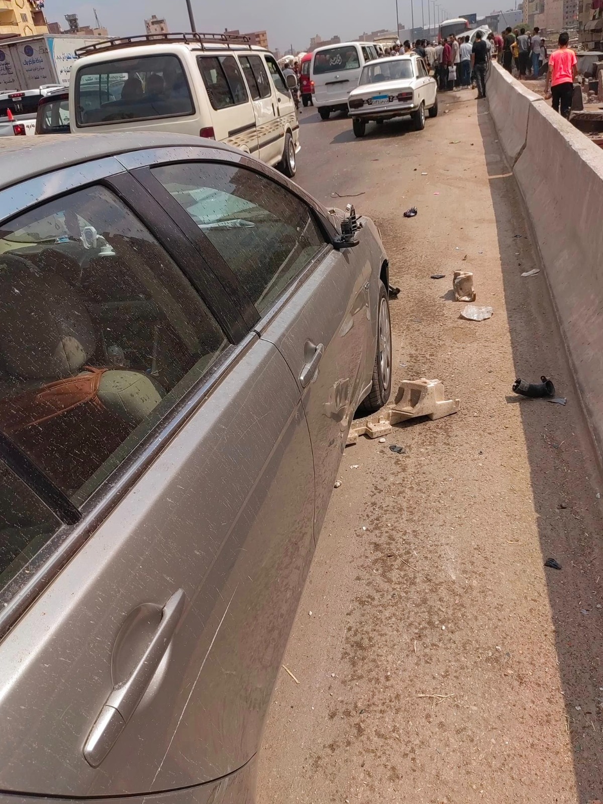 وكشفت المعاينة الأولية عدو وجود إصابات حيث أسفر الحادث عن تهشم جزء من السيارة الملاكي بعد خروجها عن مسارها وأصطدمها بجزء خرساني، وتم تسير الحركة المرورية وفتح الطريق وتحرير محضر بالواقعة.