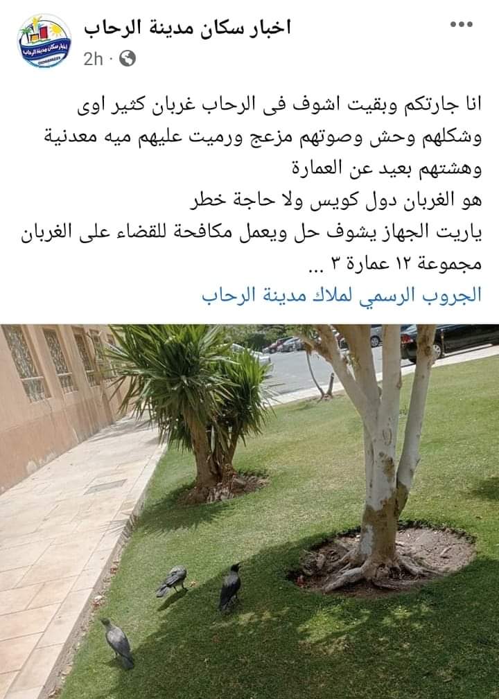 واشتكى عدد كبير من المواطنين، من تواجد الغربان بالقرب من نوافذ منازلهم، متخوفين من ضررها على أطفالهم.